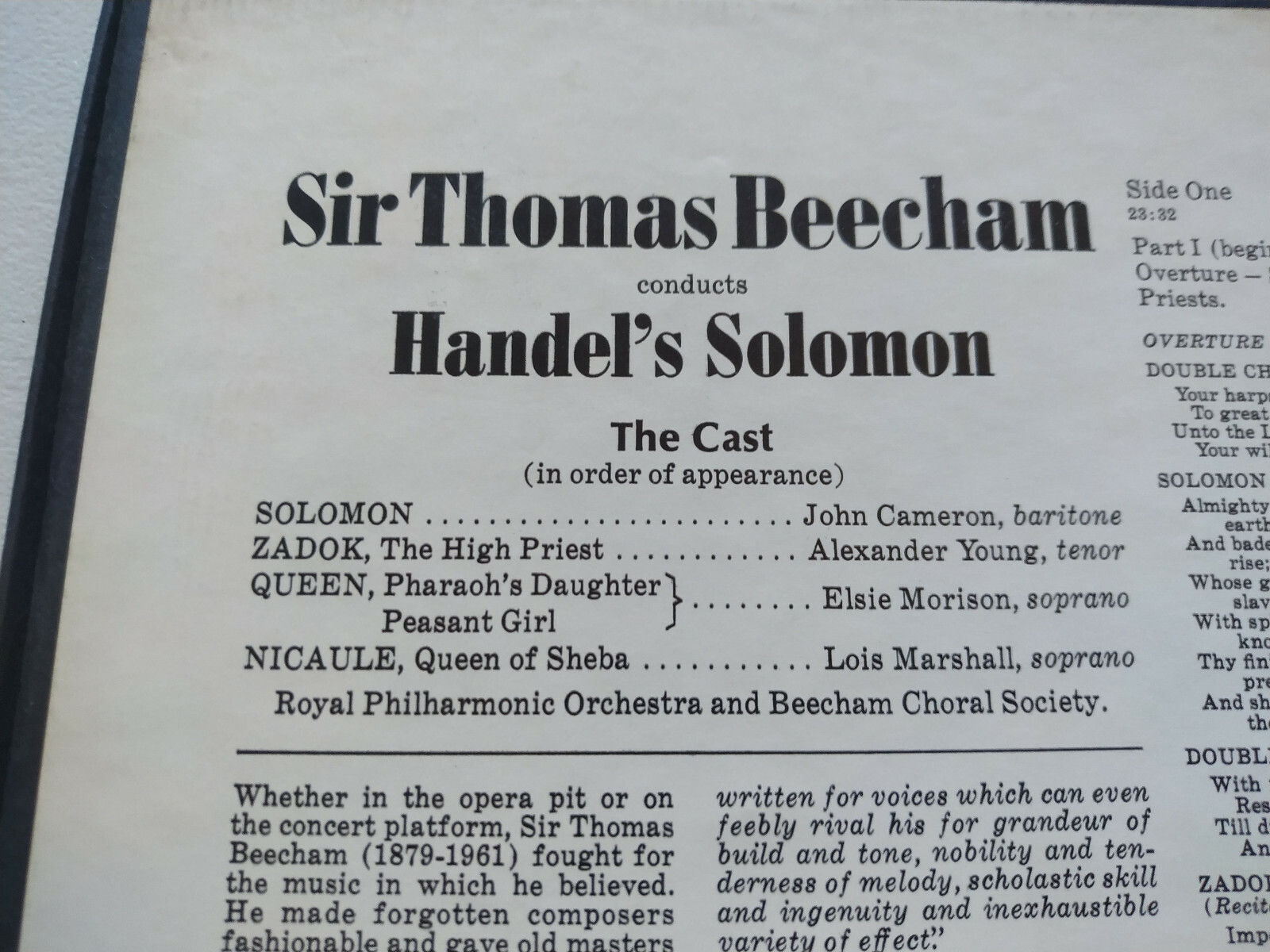 Handel Solomon Sir Thomas Beecham USA Press and 43 similar items