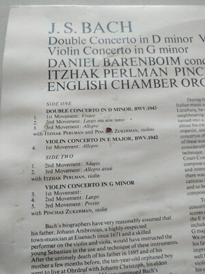 Bach Double Concerto Violin Barenboim and 44 similar items