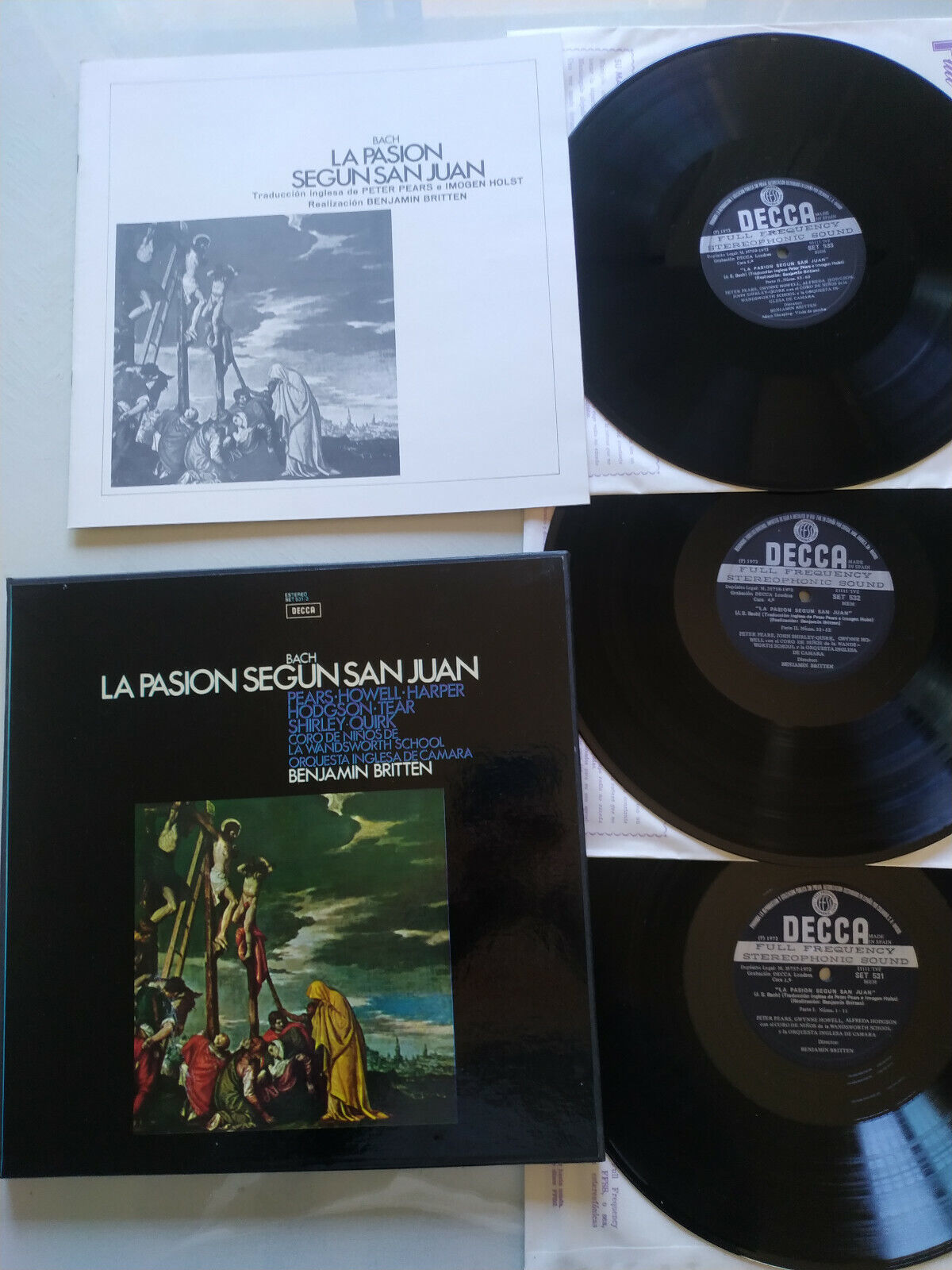 Bach La Passion Selon san juan Decca 1972 Boîte 3 X LP + Livret 12 " vinile