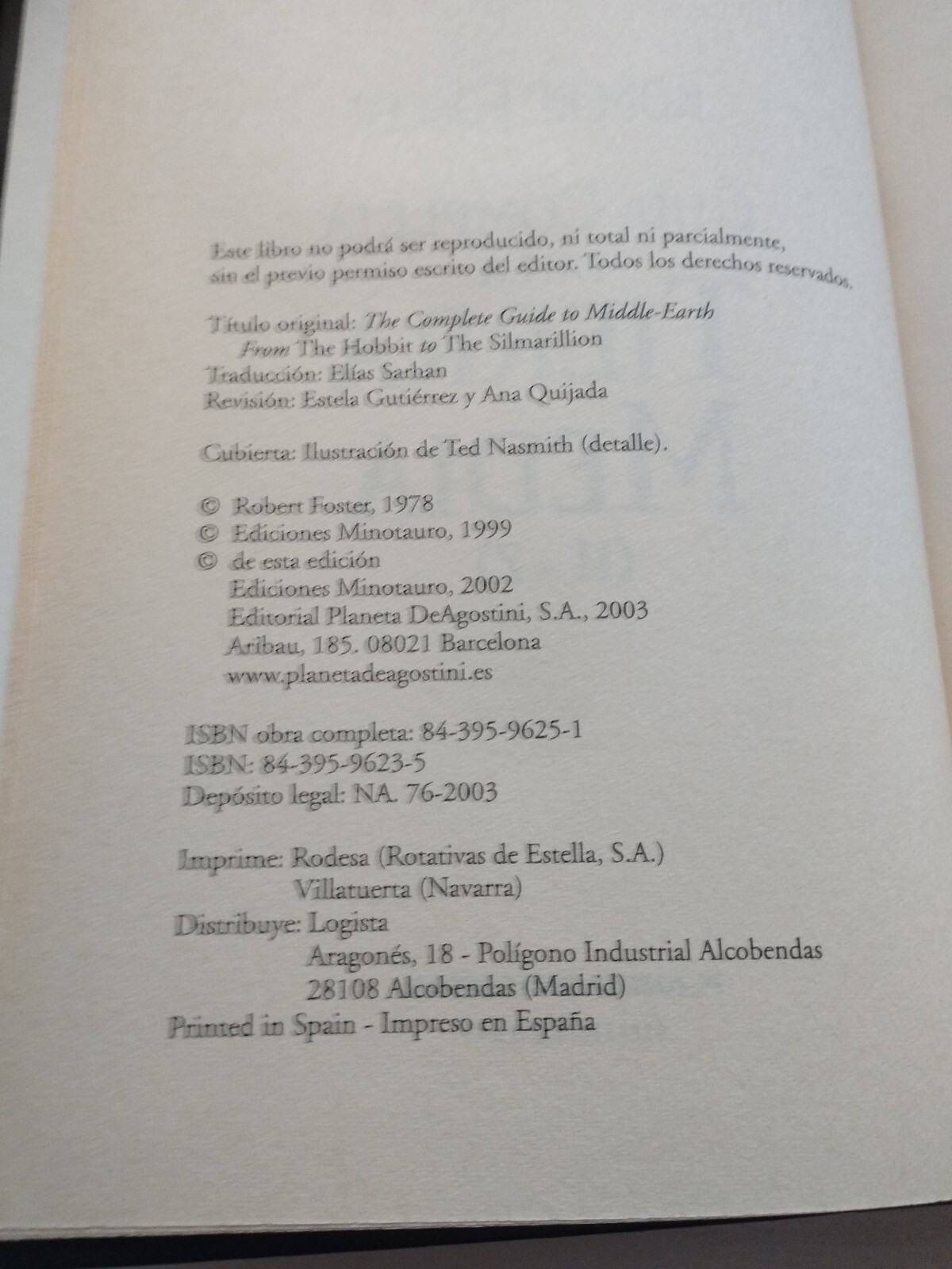 Complete Guide tierra Media H-Z Tolkien Robert Foster Minotaure Livre Espagne Am