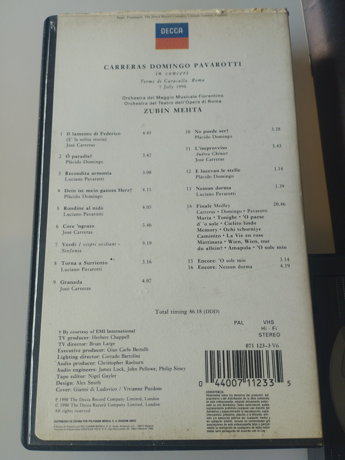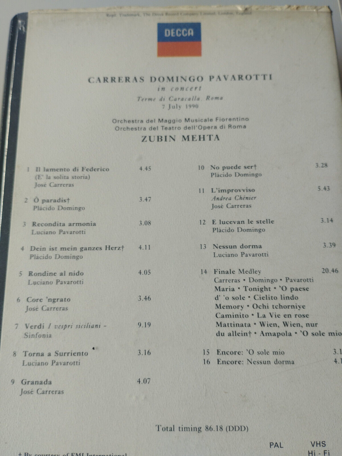 Course DOMINGO Pavarotti IN Concert Mehta 3 Three Tenors 1990 - VHS Film Tape Am