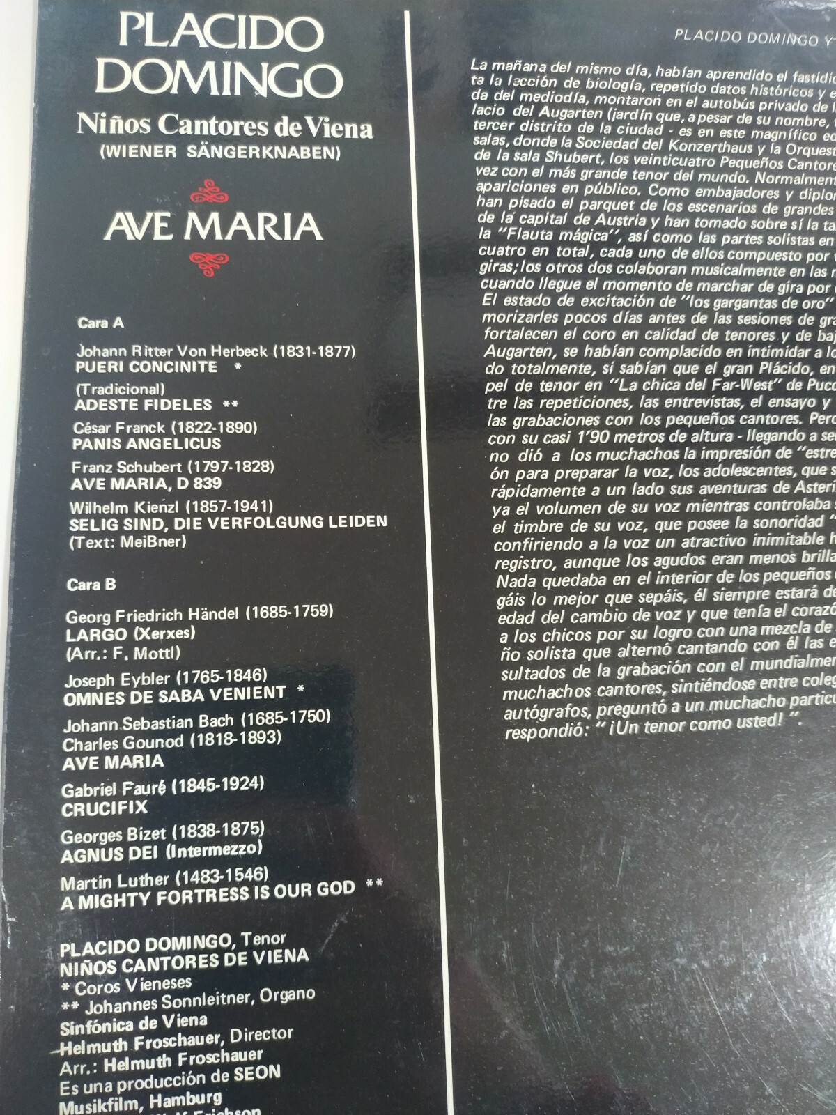 Placido Domingo Ave Maria RCA 1981 Edition Espagne - LP Vinile 12 "VG / VG 3T