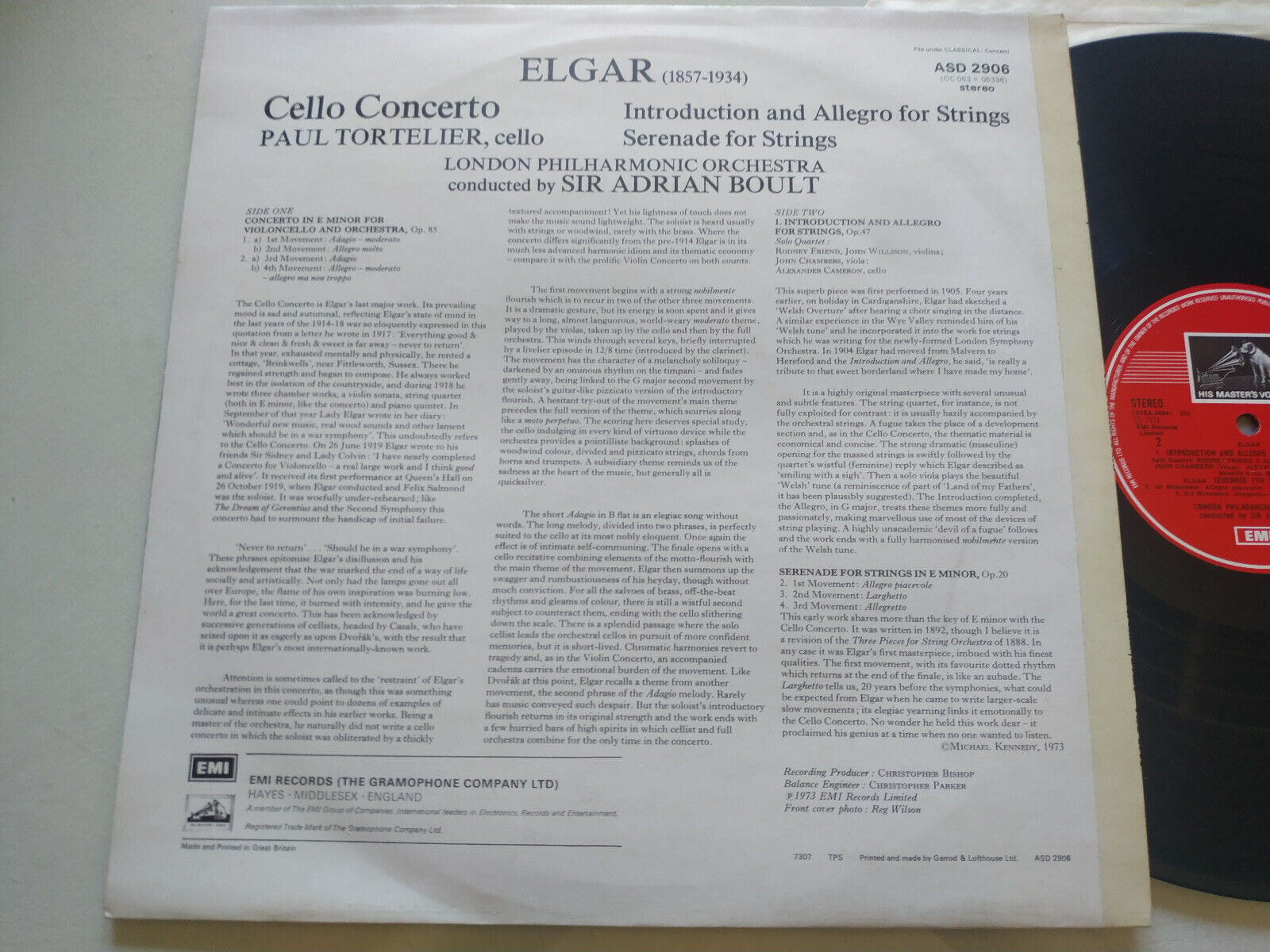Elgar Cello Concerto Paul Tortelier Adrian Boult 1973 - LP 12 " vinile VG/VG Am