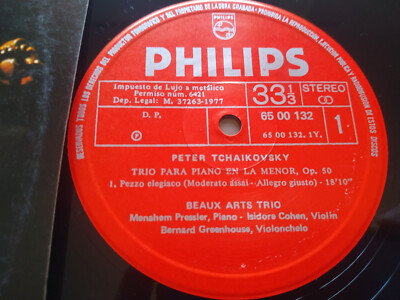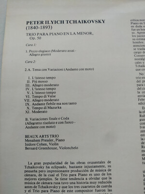 Tchaikovsky Trio para piano OP 50 Beaux Arts Trio 1977 - LP 12 " vinyl VG/VG