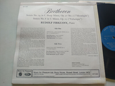Beethoven Pathetique Moonlight Sonatas Rudolf Firkusny - LP 12 " vinyl VG/VG AM