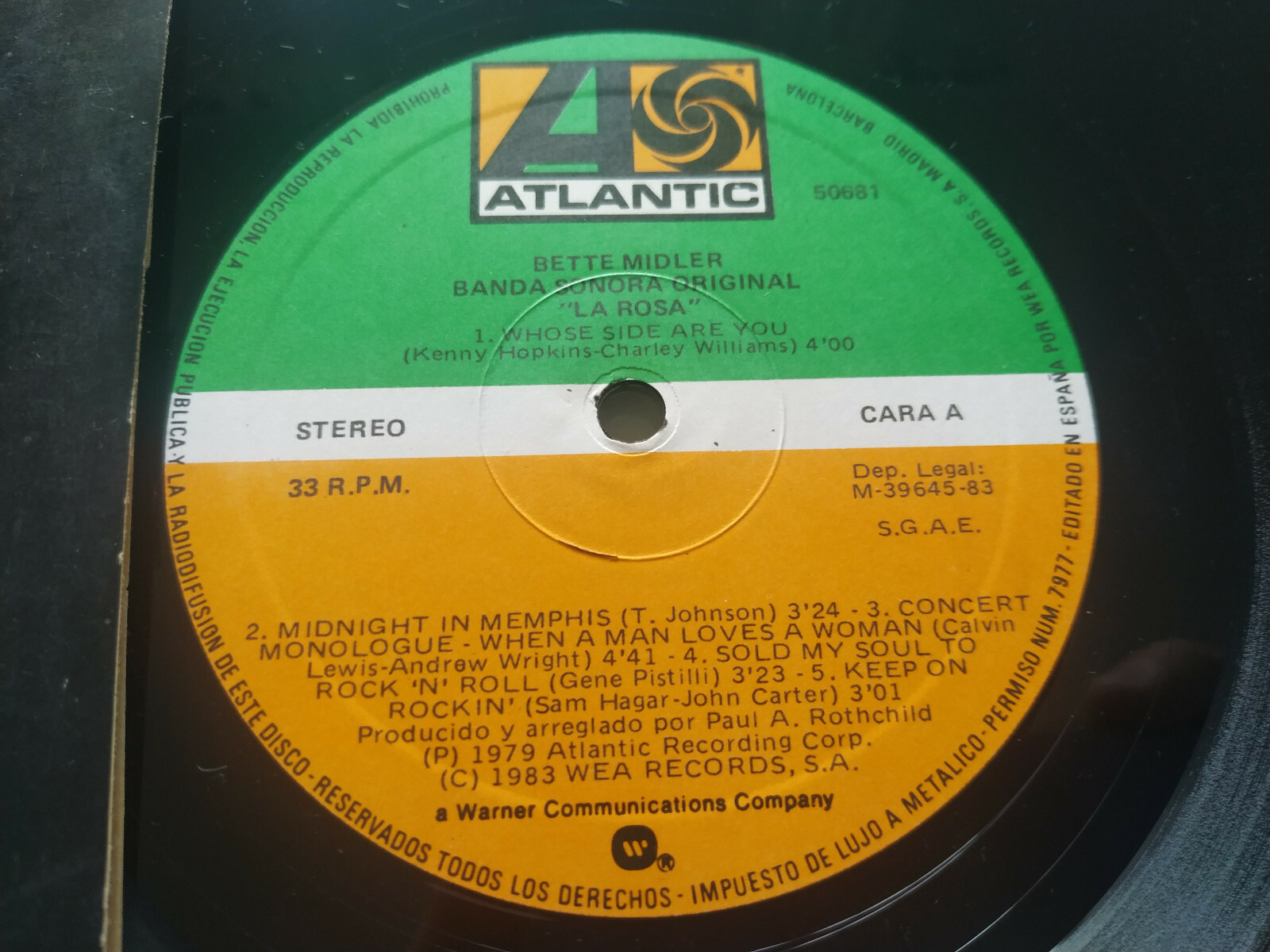 Bette Midler La Rosa Bande originale 1983 Espagne First Press - LP Vinile 12" VG/VG