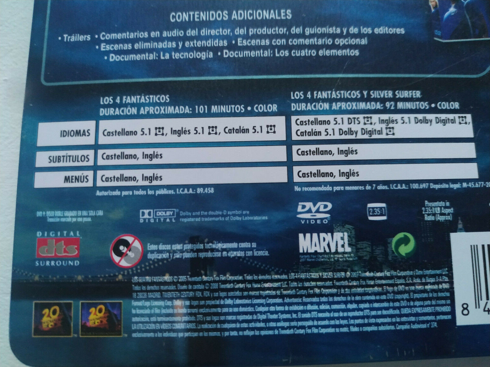 los Fantastic 4 + SILVER Surfer Marvel Steelbook 4 x DVD Spanish English 3T
