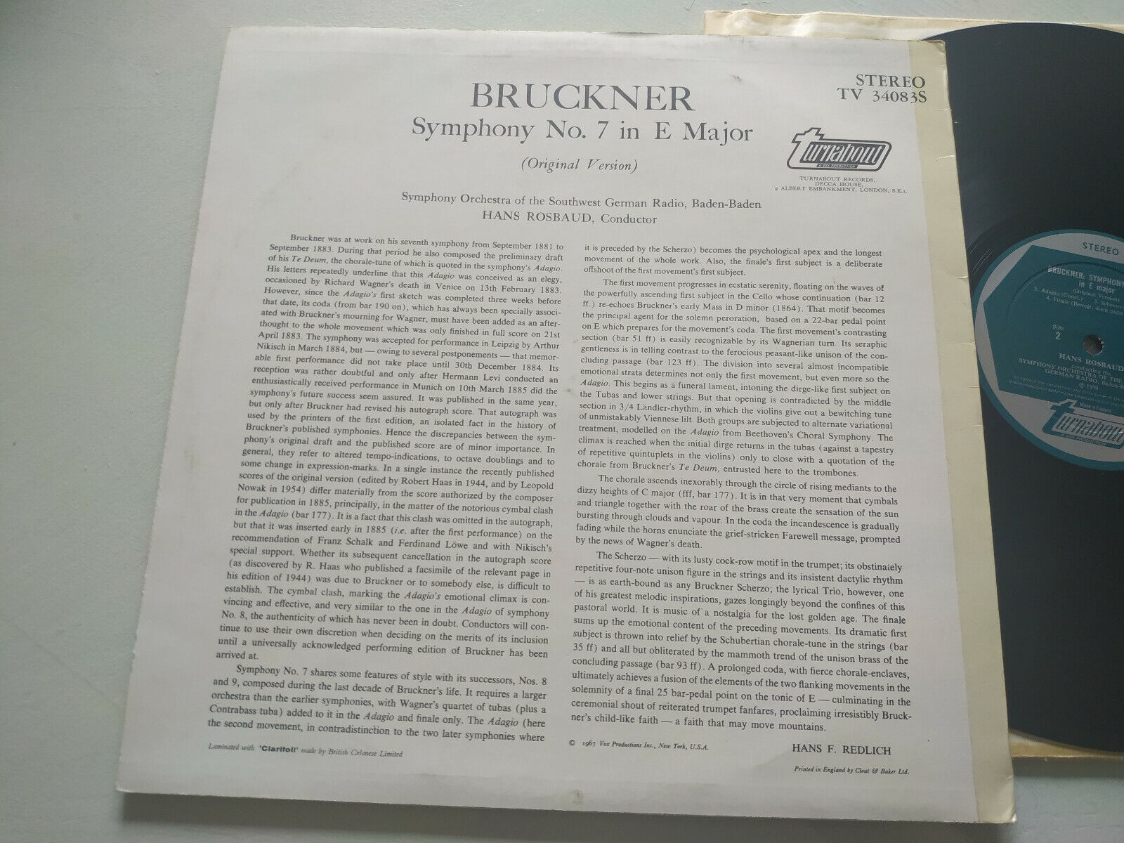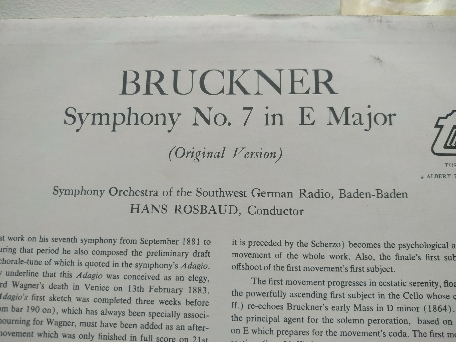 Bruckner Symphony No 7 Hans Rosbaud 1959 UK and 44 similar items