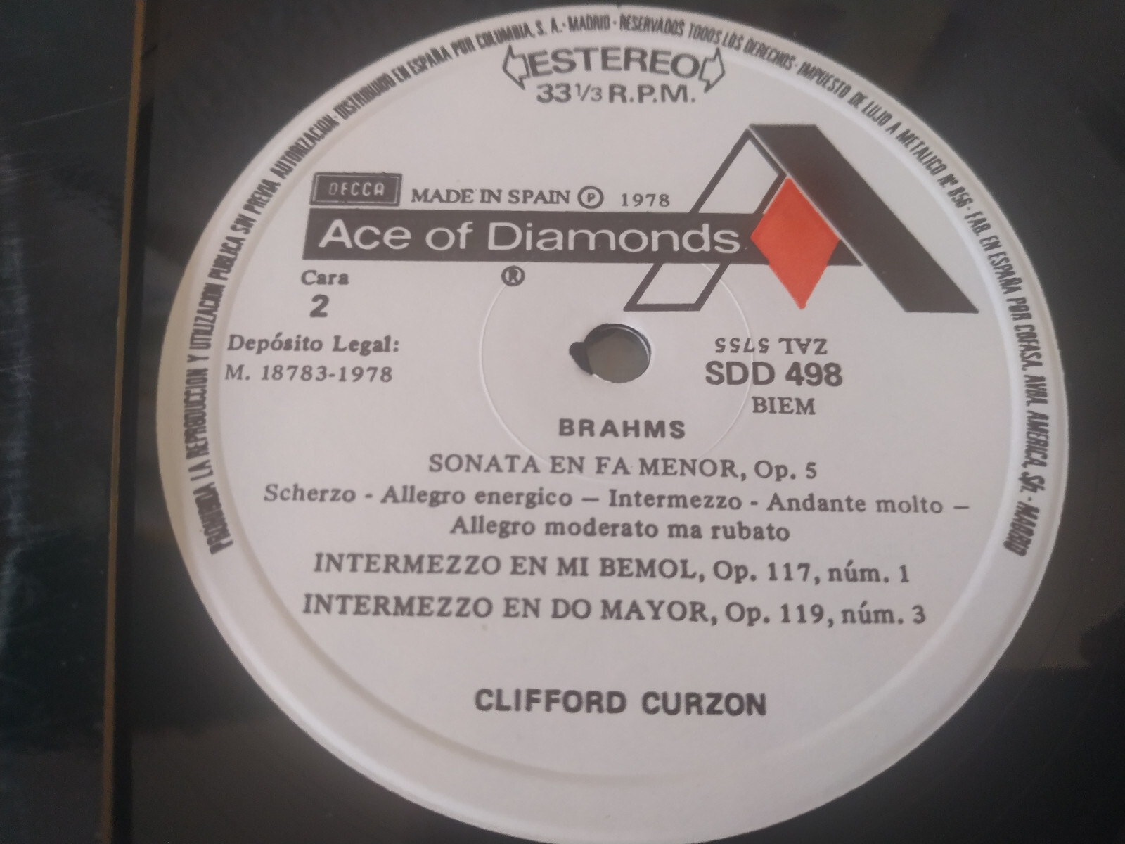 Curzon interprete Brahms Sonata FA mineur 1978 AOD - LP 12 " Vinile VG / VG