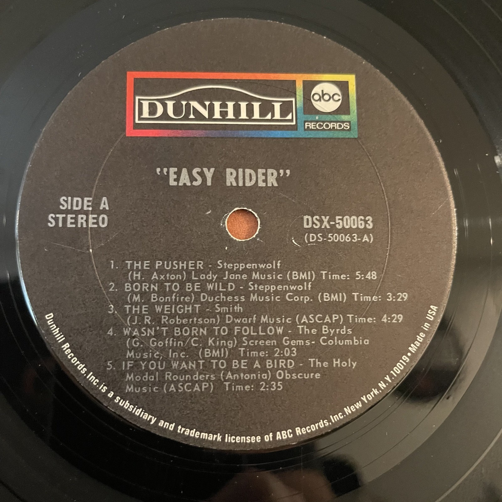 Easy Rider Soundtrack Vinyl LP ABC DSX 50063 Steppenwolf Hendrix Byrds 1st Press