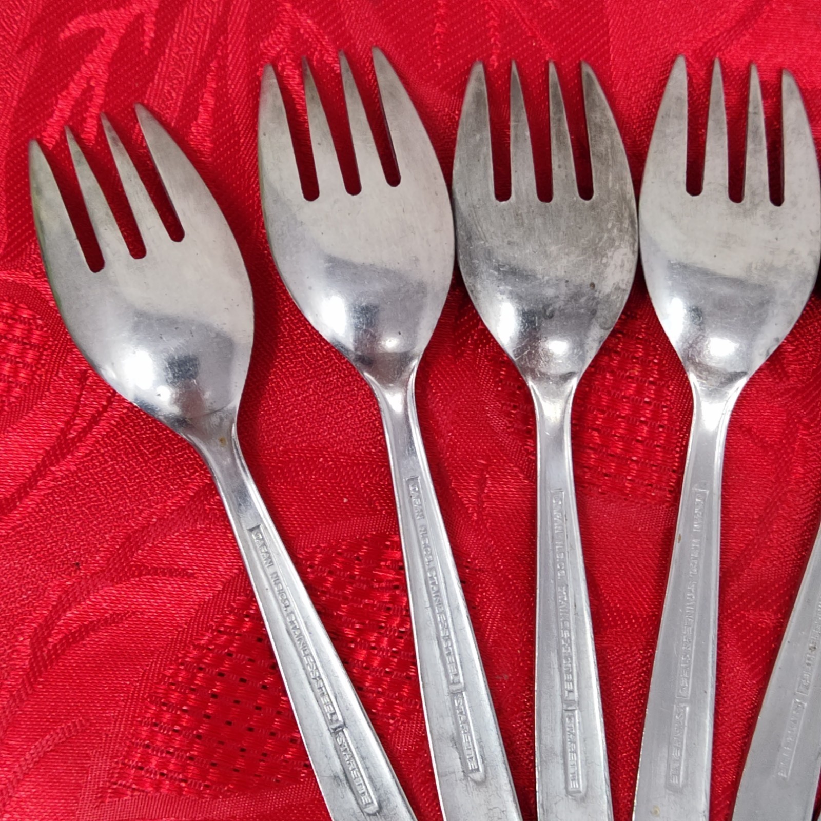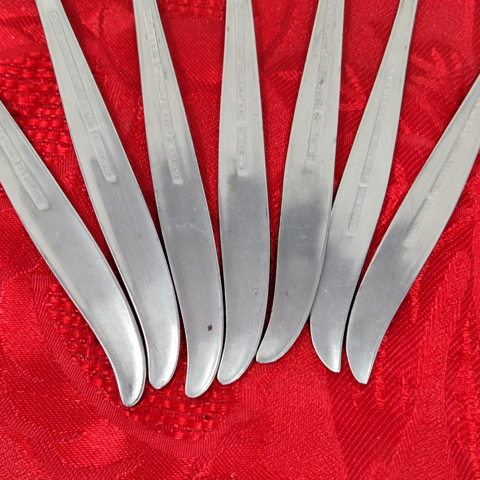 7X SF Tsp N.S. CO. STARETTE Stainless Salad Forks Teaspoons Japan Starburst
