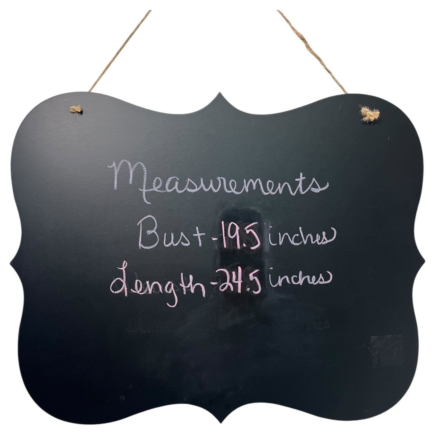 Approximate flat measurements: Bust - 19.5 inches, Length - 24.5 inches