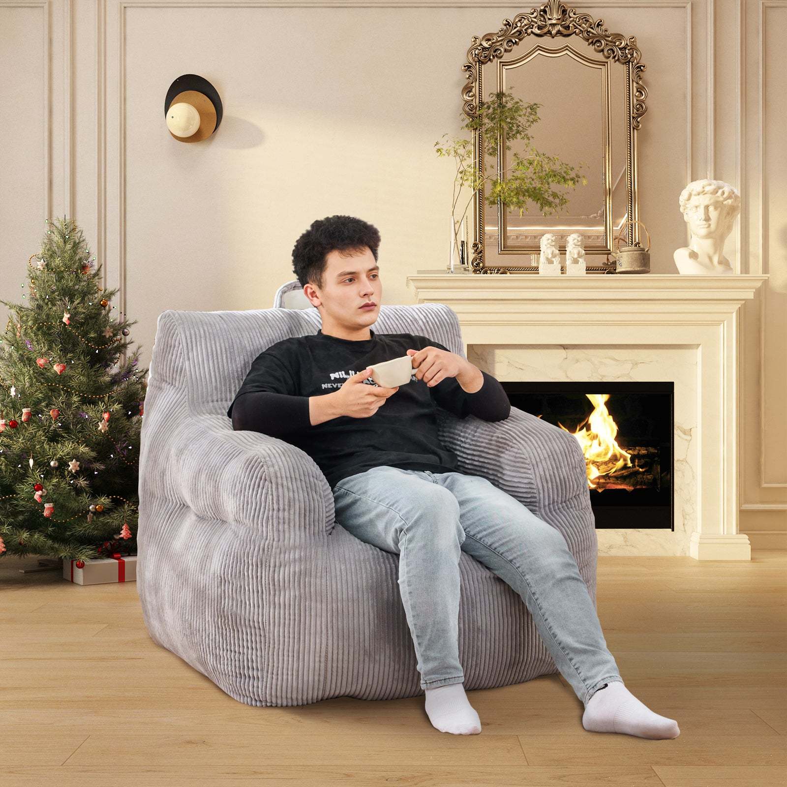 ?Comfortable Support?-The comfy fuzzy bean bag couch chair is stuffed high-density and high resilience foam. Beside the high quality sponge, our beanbag chair designed with ergonomic backrest and large armrests, which providing more supportive when you sitting or lying on the sofa.