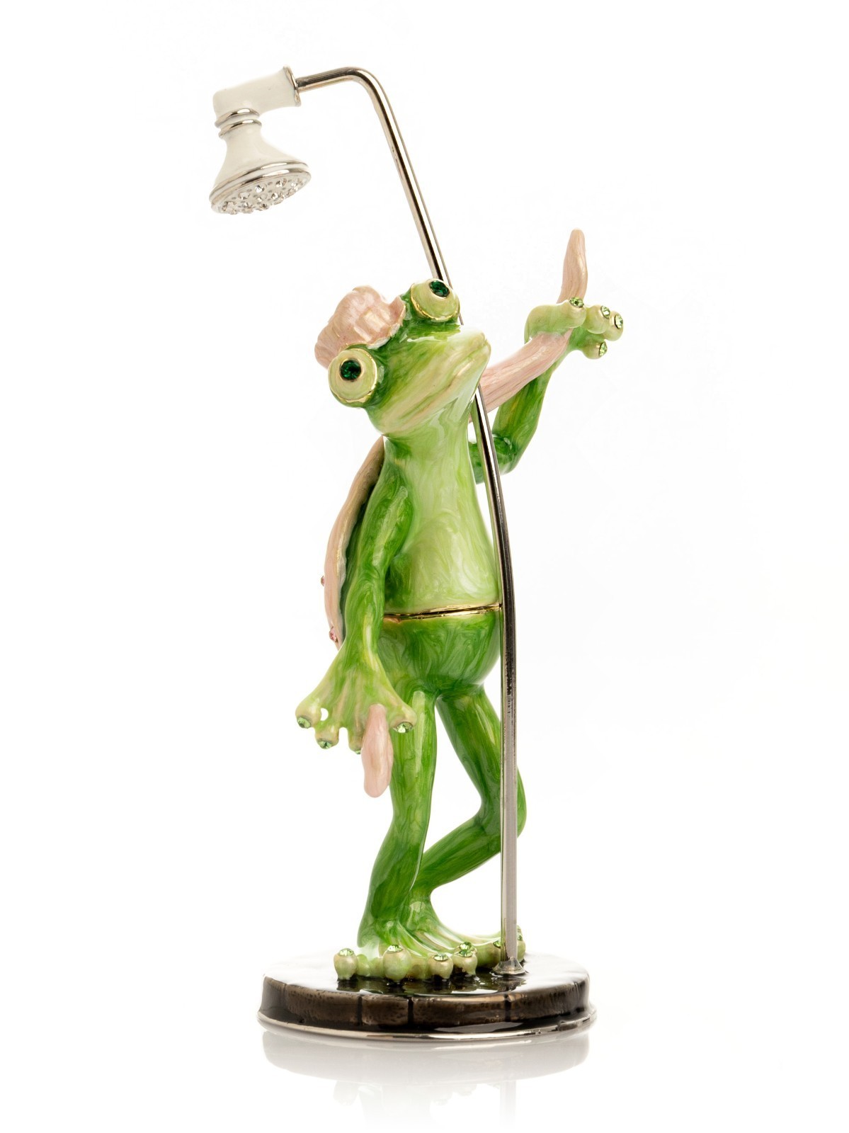 Keren Kopal Frog taking a shower Trinket box Decorated with Austrian Crystals