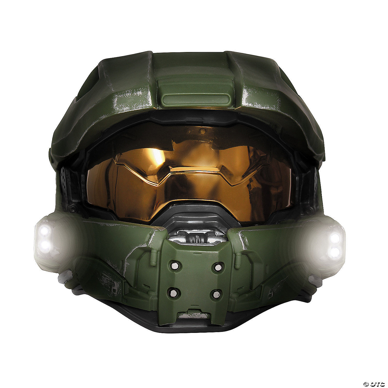 Master Chief Lightup Adult Mask. From the award-winning video game Halo and it's sequels! ncludes: Deluxe Master Chief adult light-up deluxe army green helmet. Full over-the-head helmet looks just like the one you see in the game. Available size; One size fits most adults. This is an officially licensed Halo products.(c) 2017 Microsoft Corporation.