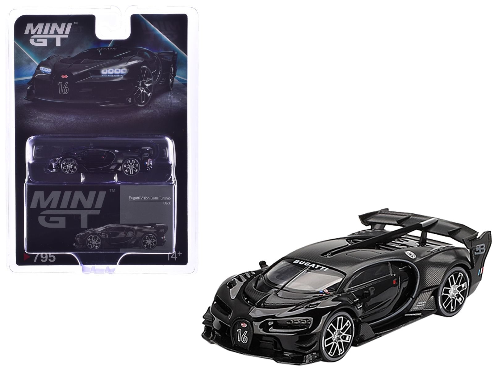 What comes with the model? You get the Bugatti Vision Gran Turismo Black and Carbon Limited Edition 1/64 diecast model, packed in a blister pack for protection and presentation. Where should I display it? The Bugatti Vision Gran Turismo is designed to be displayed, not just stored away. Show off your passion; display this beauty on a shelf, a desk, or even as a statement piece in your travel bag.