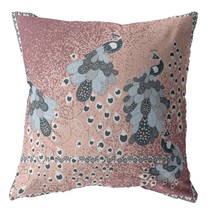 16 Inch Dusty Pink Boho Bird Zippered Suede Throw Pillow