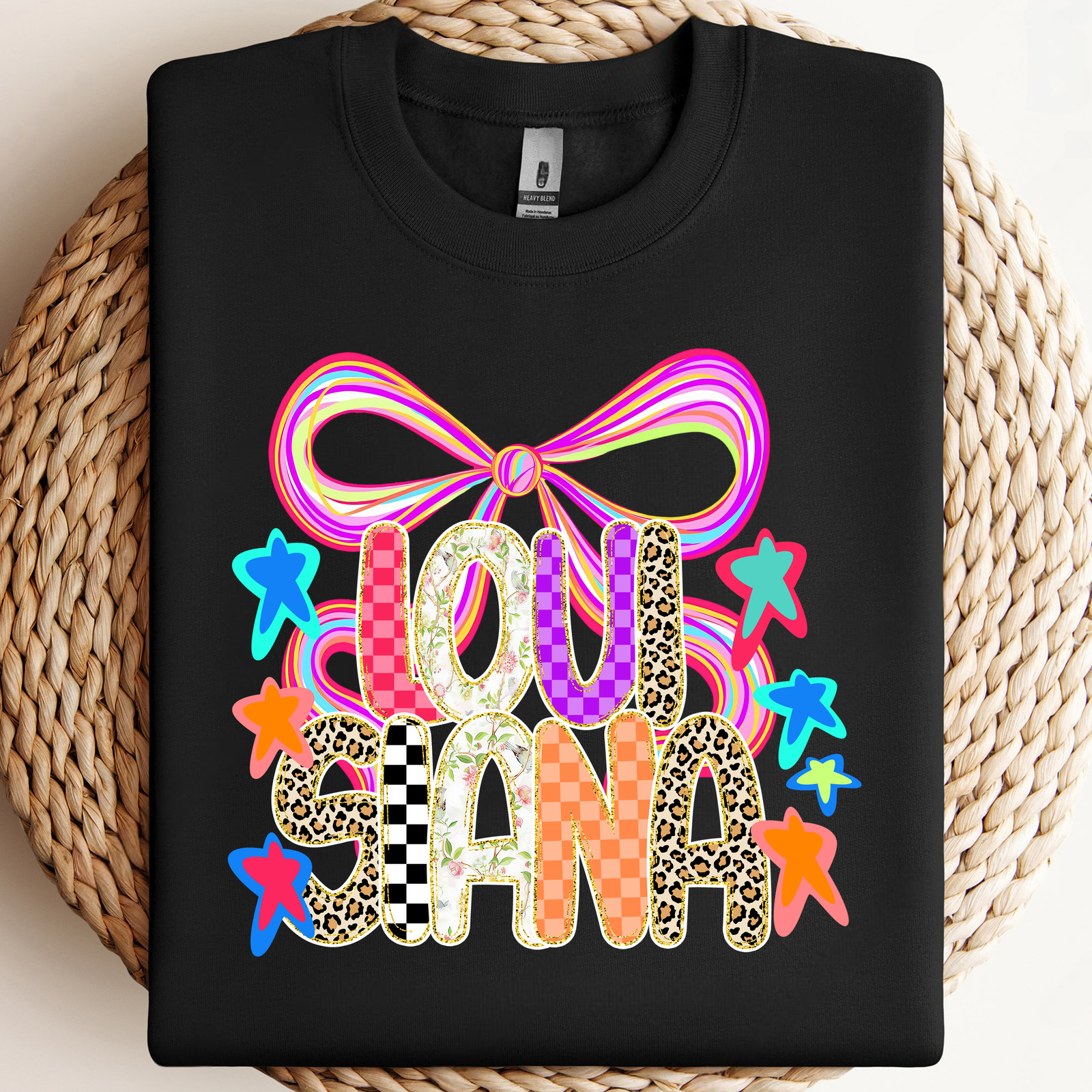 Coquette Bow Louisiana PNG, Girly Louisiana PNG, Preppy Neon Checkered State PNG, Trending Design