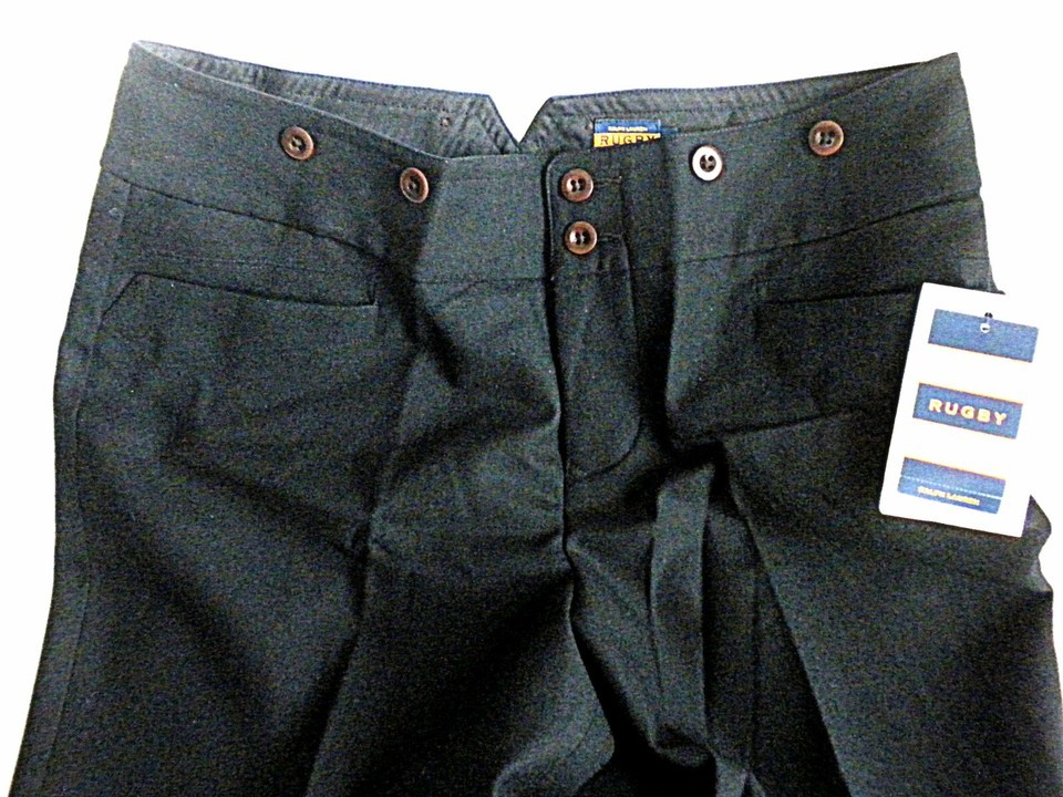 Ralph Lauren RUGBY Sz 12 Black Wool Lined Straight Leg Suspender Dress Pant NWT