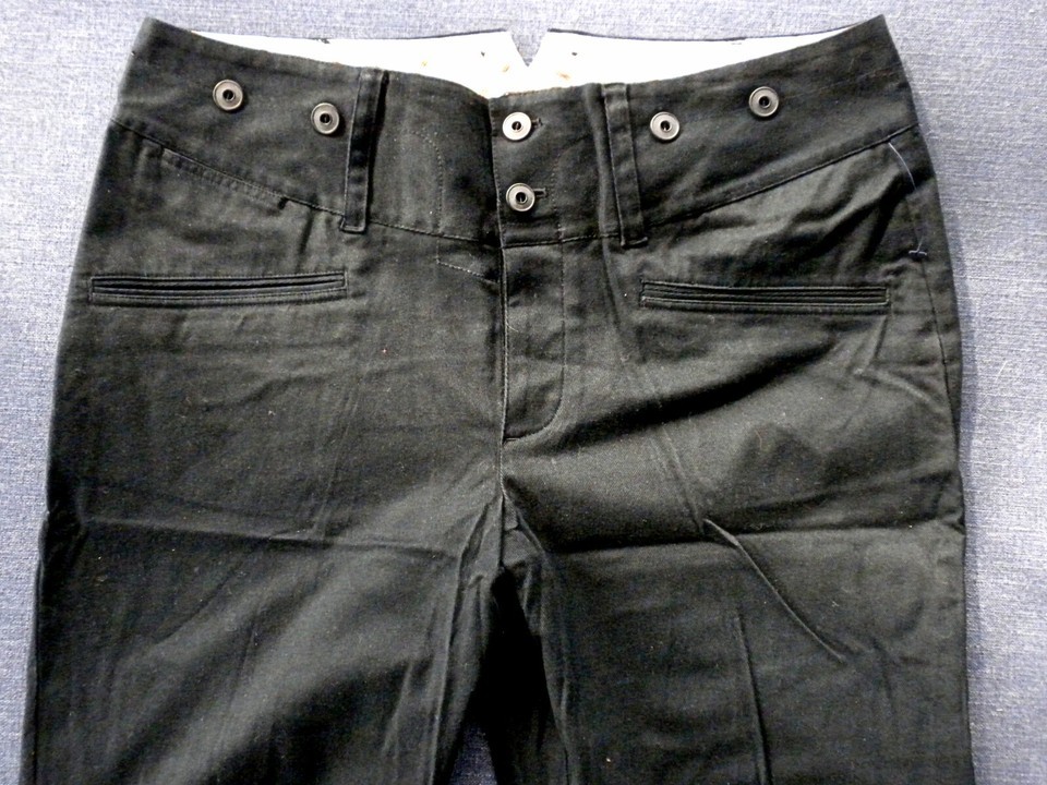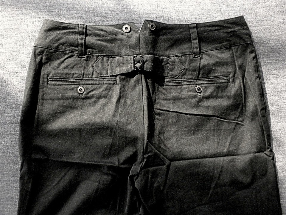 New with tag cotton/elastane straight leg equestrian riding style dress pant., 2 front pockets, coin pocket, 2 rear button flap pockets, button fly and double button top closure. 4 front buttons and 2 rear buttons on waistband for suspenders and rear decorative pull adjustment. Reinforced double layer inner knee (see pictures)