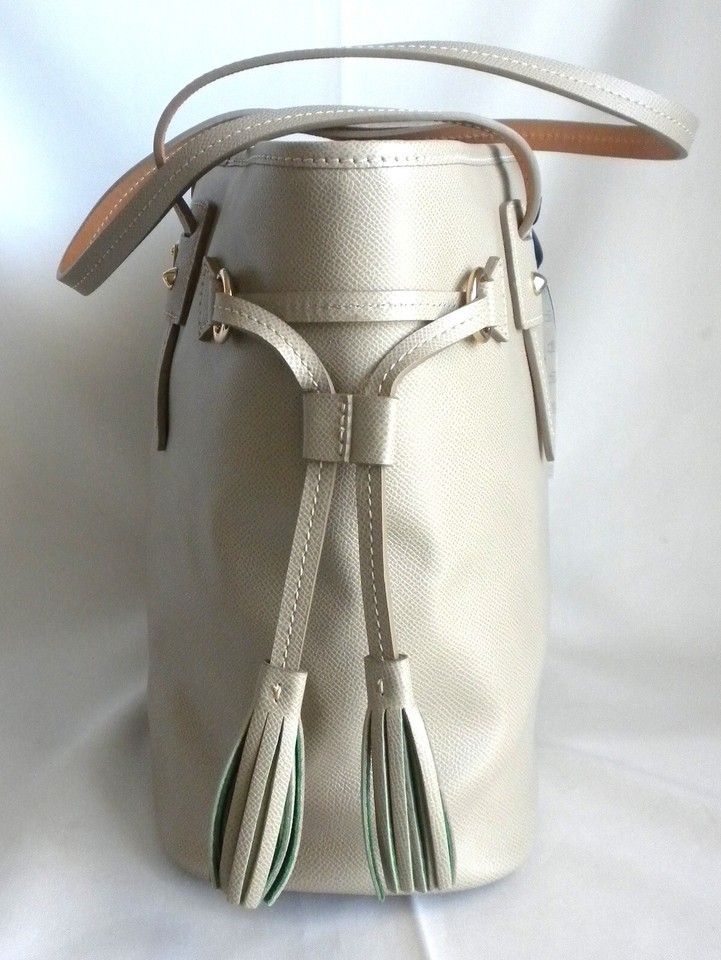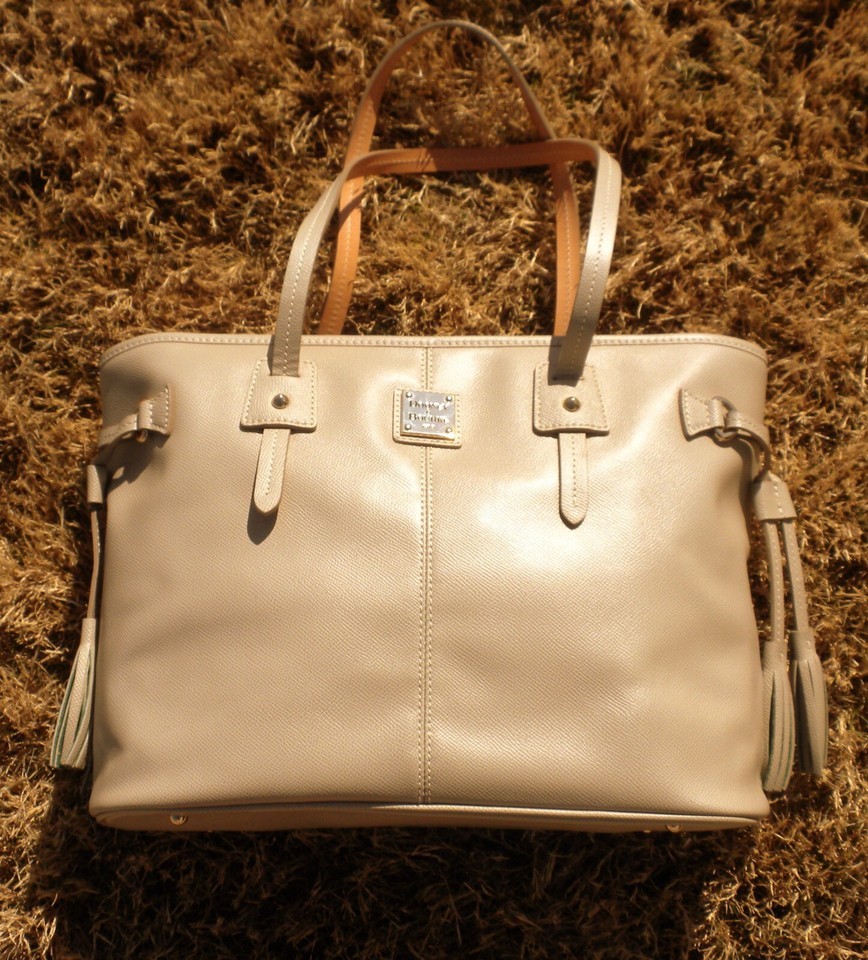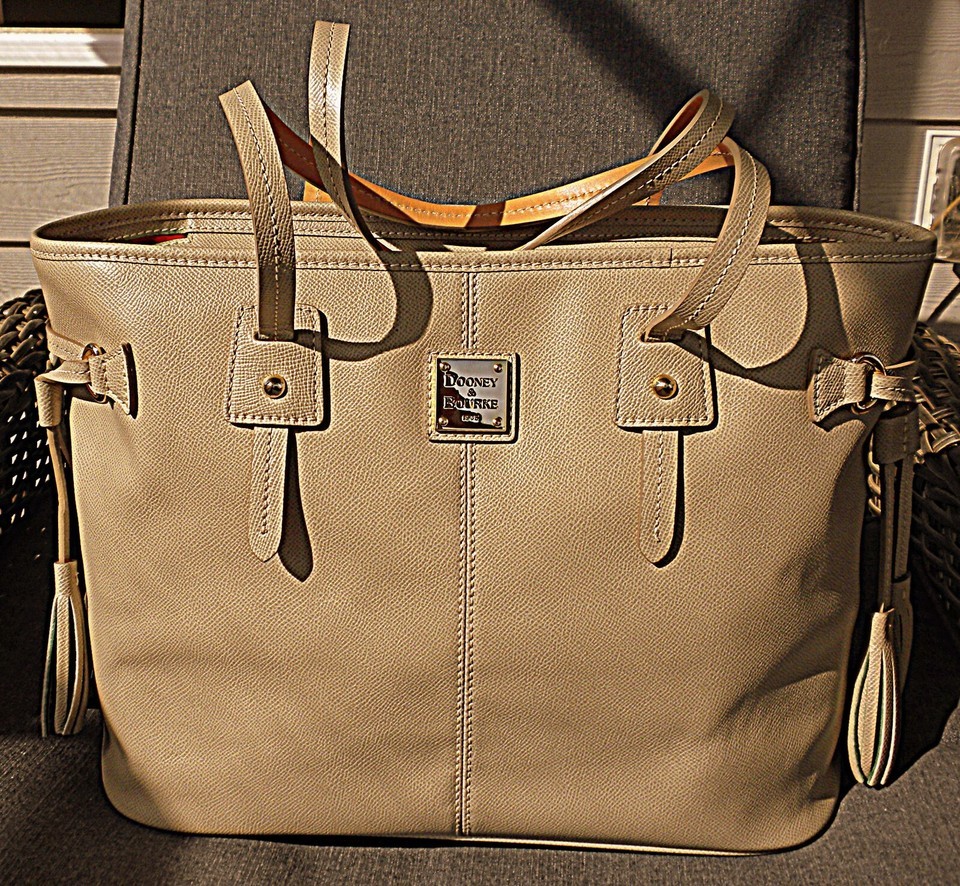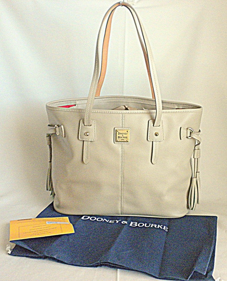 New Dooney Bourke HL655 Davis Tassel Saffiano Pebble Leather Large Tote Handbag Taupe/Tan