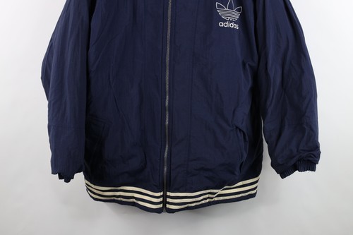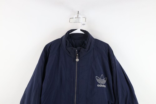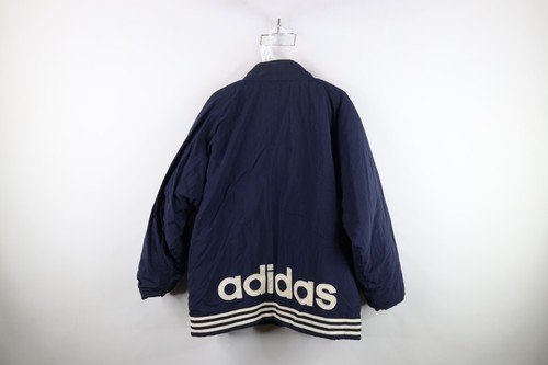 Vintage 90s Adidas Mens Large Spell Out Reversible Quilted Puffer Jacket Blue