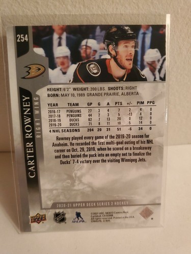 2020-21 Upper Deck Series 2 | Carter Rowney | Anaheim Ducks | #254