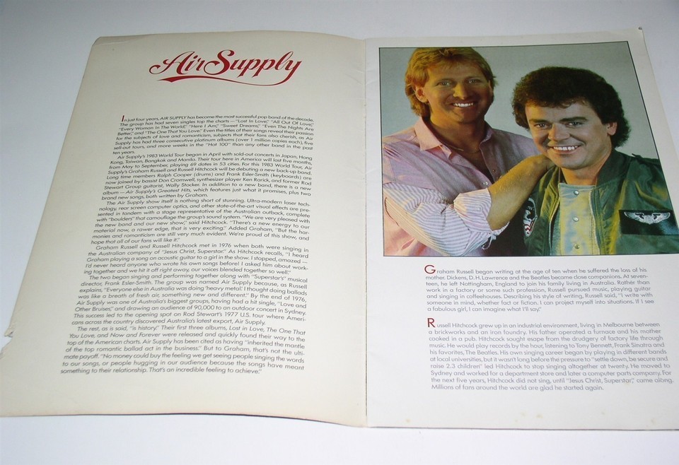 Air Supply Concert Tour Program Vintage 1983 World Tour VG+/VG++