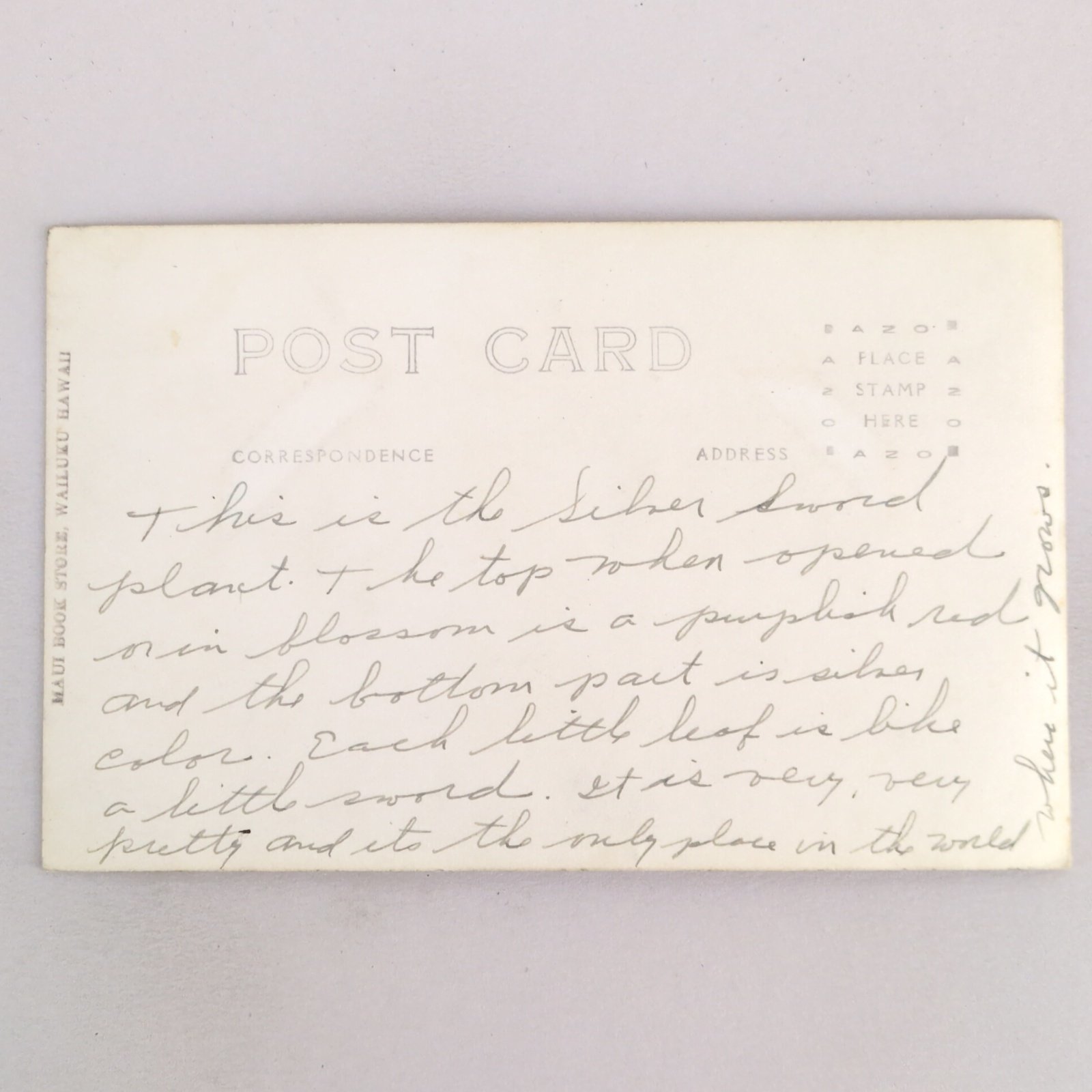 Silversword Flower Hawaii 1940s Real Photo Postcard RPPC Maui Book Store Wailuku