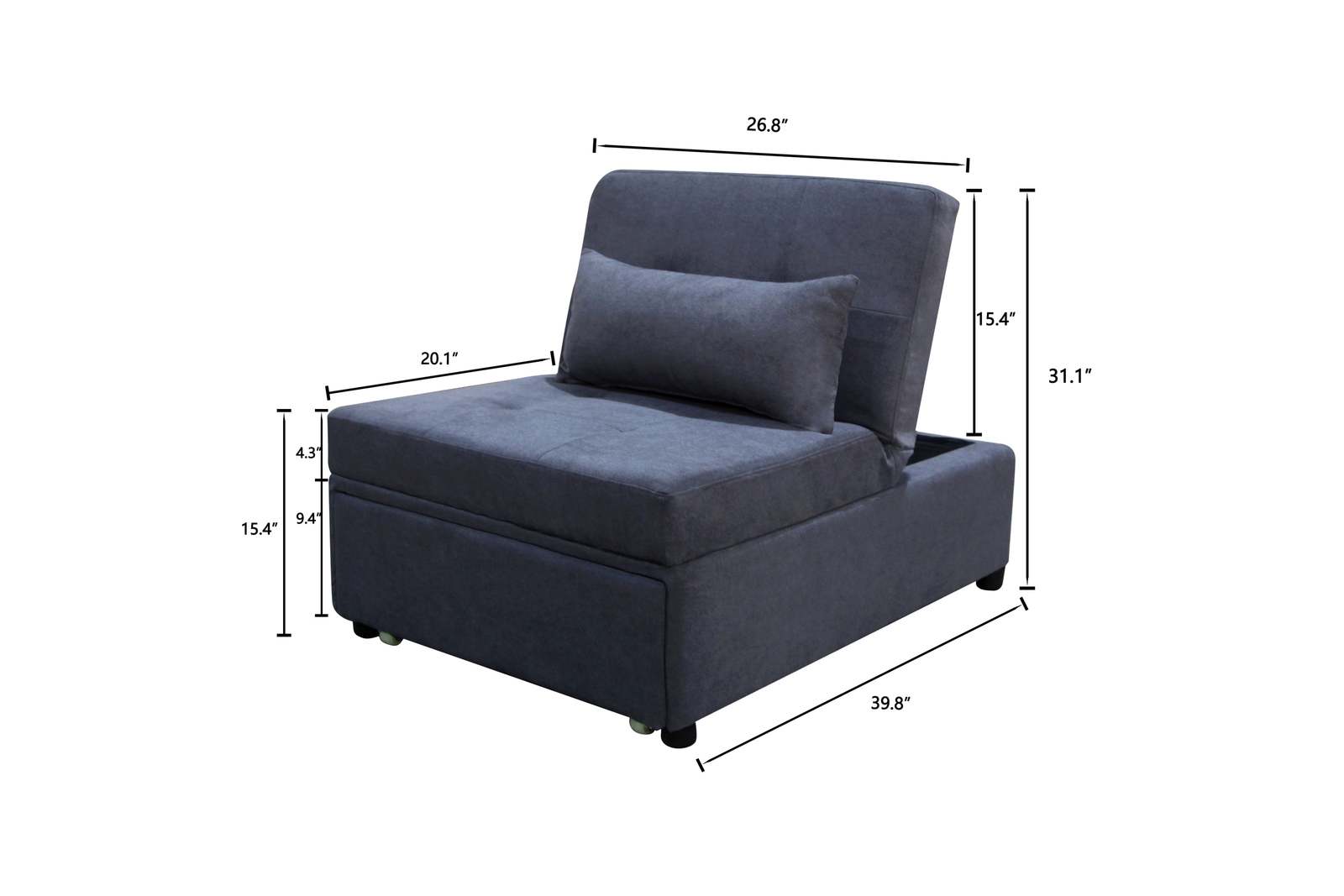 Folding Ottoman Sofa Bed - Dark Gray Convertible Guest Sleeper
