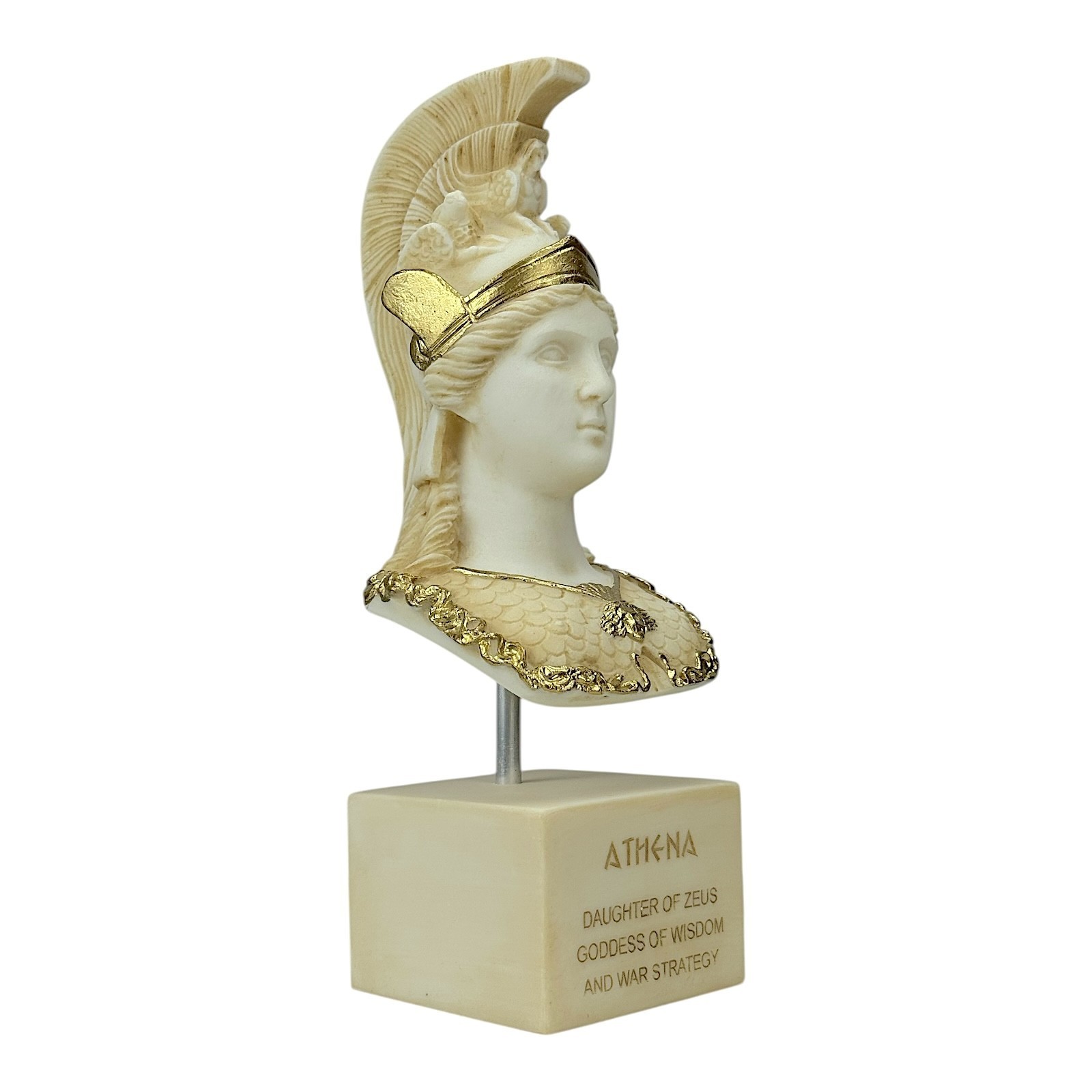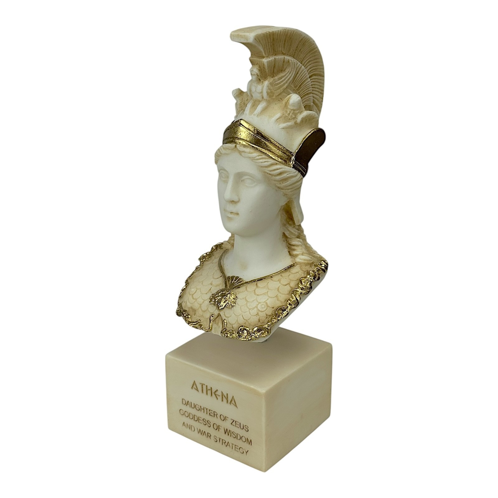 Athena Goddess Wisdom Athena Minerva Bust Cast Marble Statue Patina Color 11 in