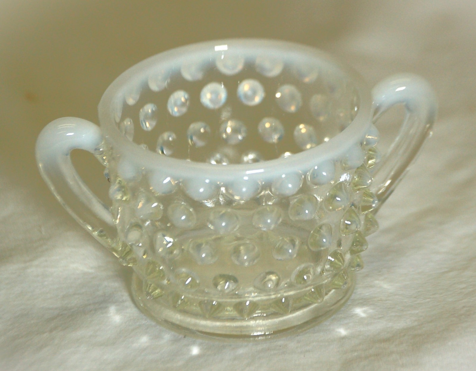 Moonstone Clear Opalescent Hobnail Mini Sugar Bowl Anchor Hocking
