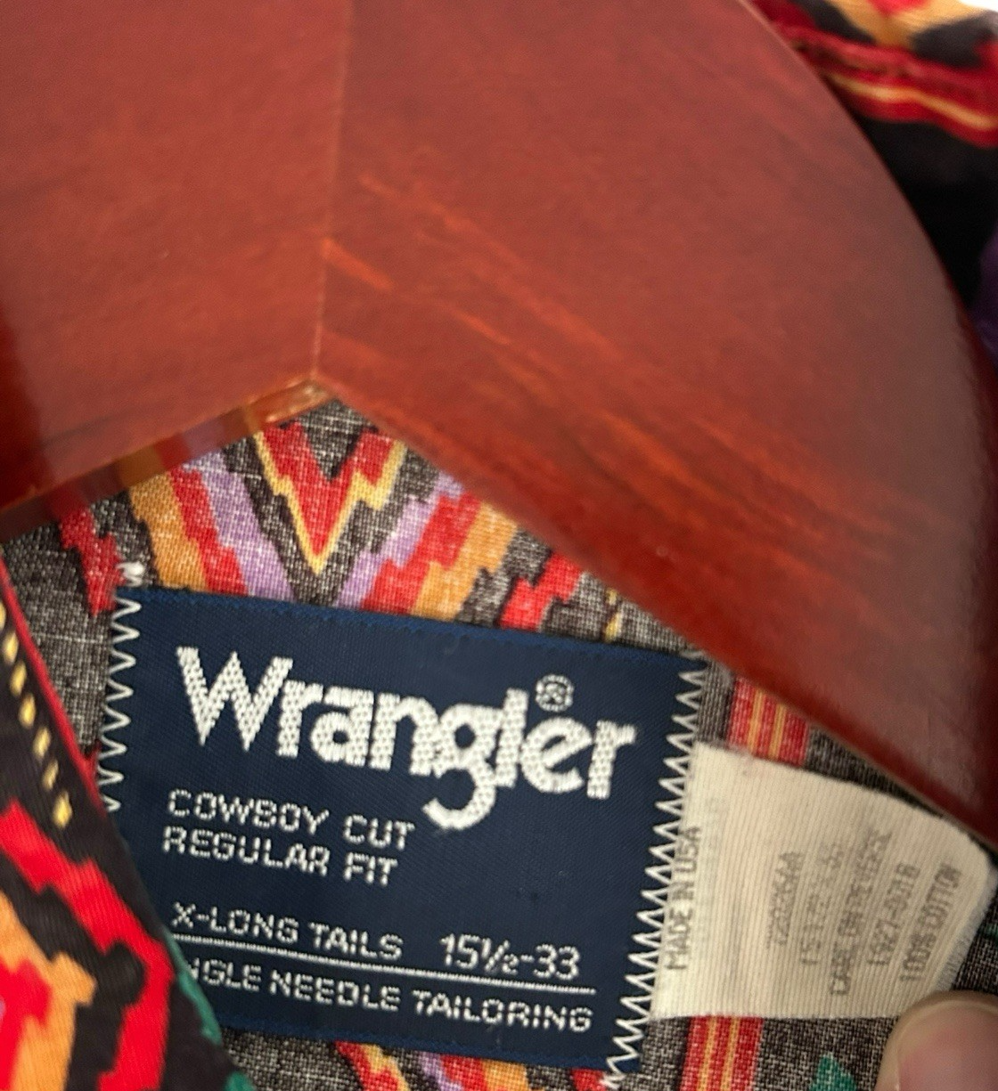 Vtg Wrangler Floral Aztec Western Shirt USA 15 1/2- 33 Cowboy Cut X-Long Tails