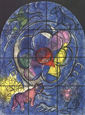 Sku: CB6347Artist: Marc ChagallTitle: Tribe of BenjaminYear: 1961Signed: NoMedium: LithographPaper Size: 31.5 x 20.5 inches ( 80 x 52 cm )Image Size: 24 x 18 inches ( 61 x 46 cm )Edition Size: 500Framed: NoCondition: A: MintAdditional Details: Poster printed for the exhibition of stained-glass windows ?The Twelve Tribes of Israel' at the Palace of the Louvre, Paris. Interpretative rendering of a lithograph created from a stained-glass window of the Synagogue of the Medical Center of the Hadassah Hebrew university in Jerusalem. Published by the National Museums, Paris. #88 in ?Chagall's Posters - A Cataloque Raisonne', Sorlier, 1975.