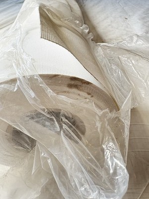 Original packaging was torn open during shipping but canvas roll is new, still in the original bag. Has a small blemish on one end, shown in pictures but otherwise roll is in new condition.
