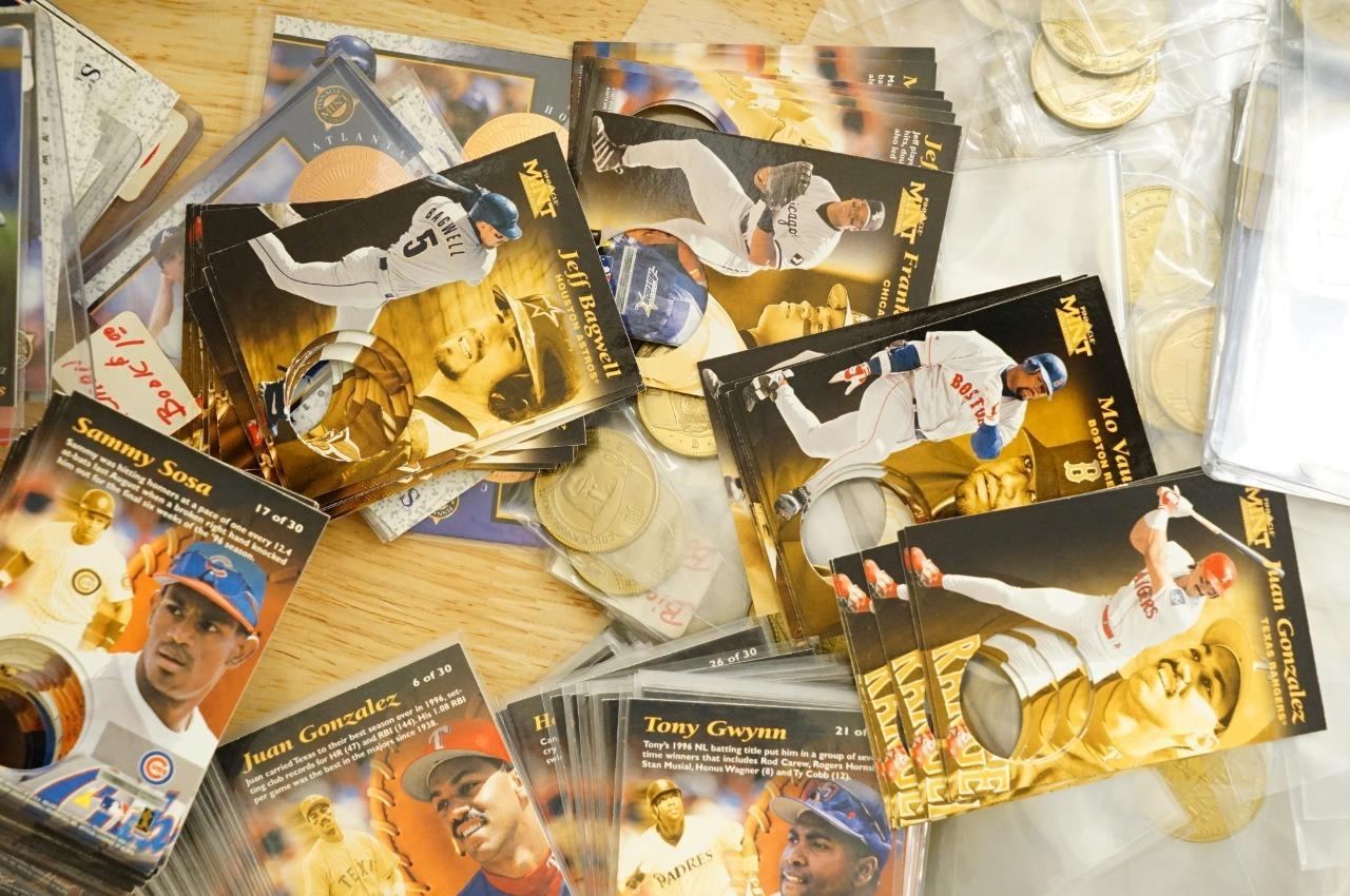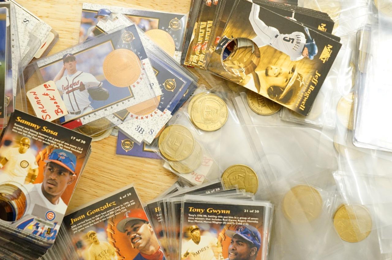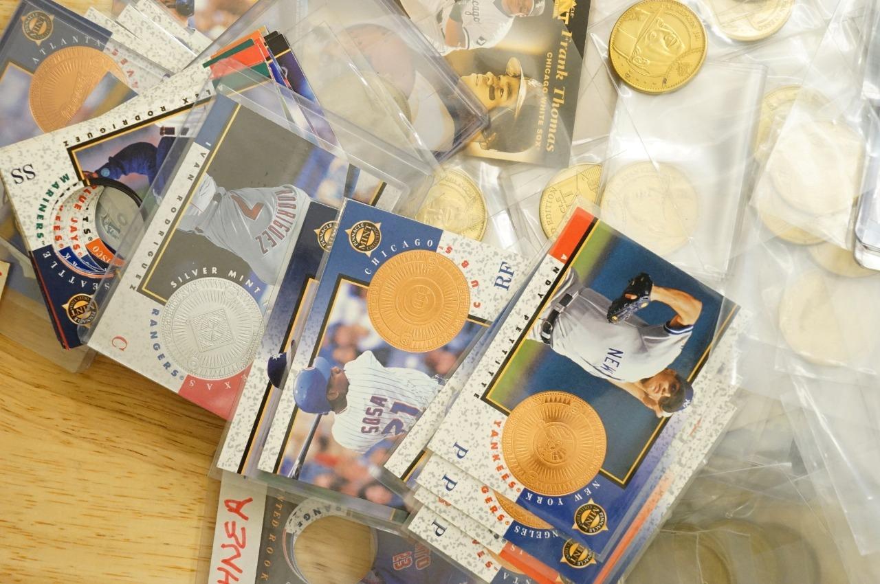 MLB Baseball Trading Cards Metal Coins Dealer Bulk Lot 1997 Pinnacle Mint. Some assembled, some loose, multiples, ready for resale. Clean. Raw and Ungraded. No smoke or pet odor.