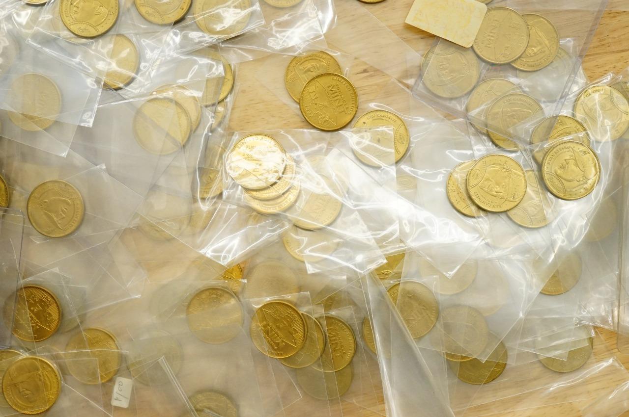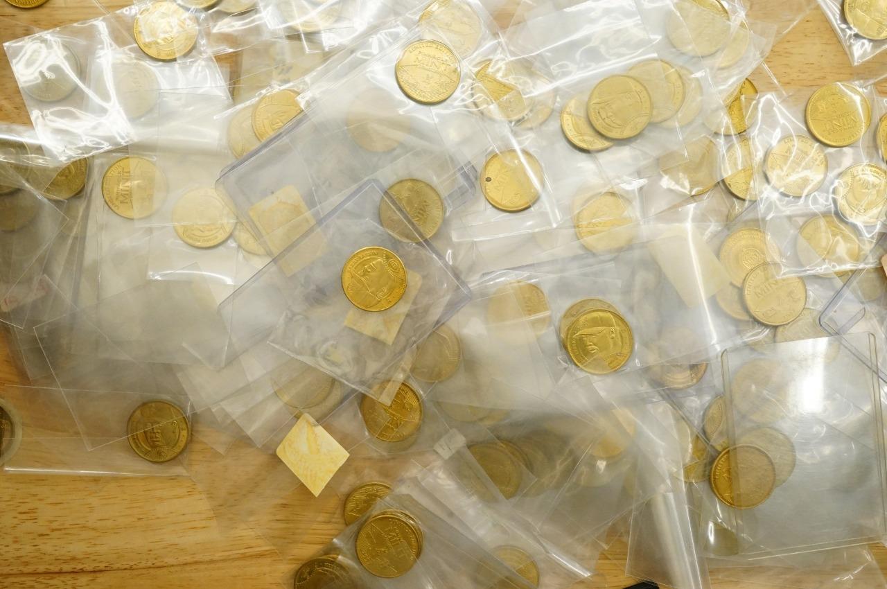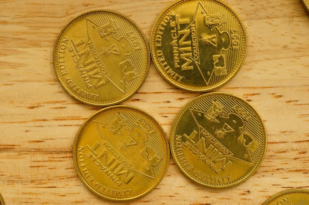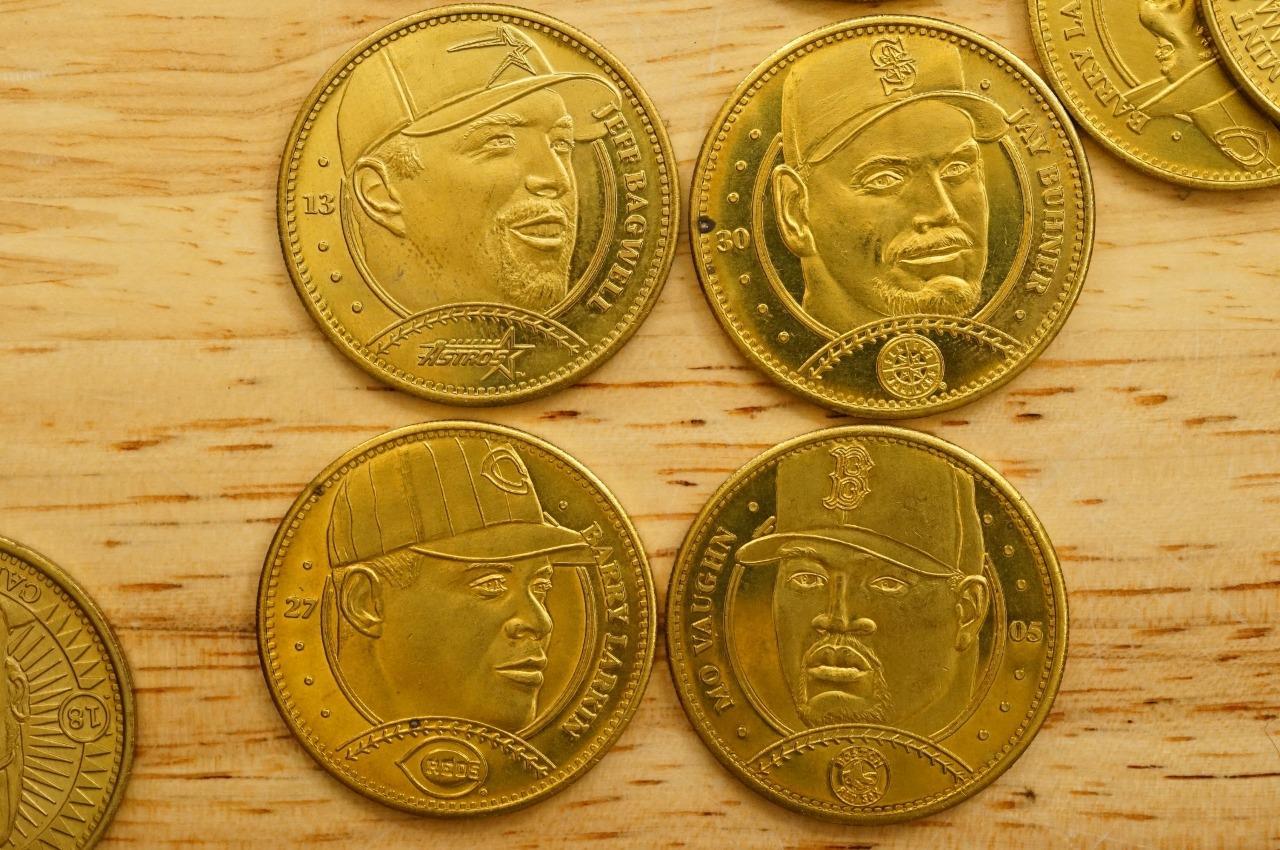 MLB Baseball Trading Cards Metal Coins Dealer Bulk Lot 1997 Pinnacle Mint. Some assembled, some loose, multiples, ready for resale. Clean. Raw and Ungraded. No smoke or pet odor.
