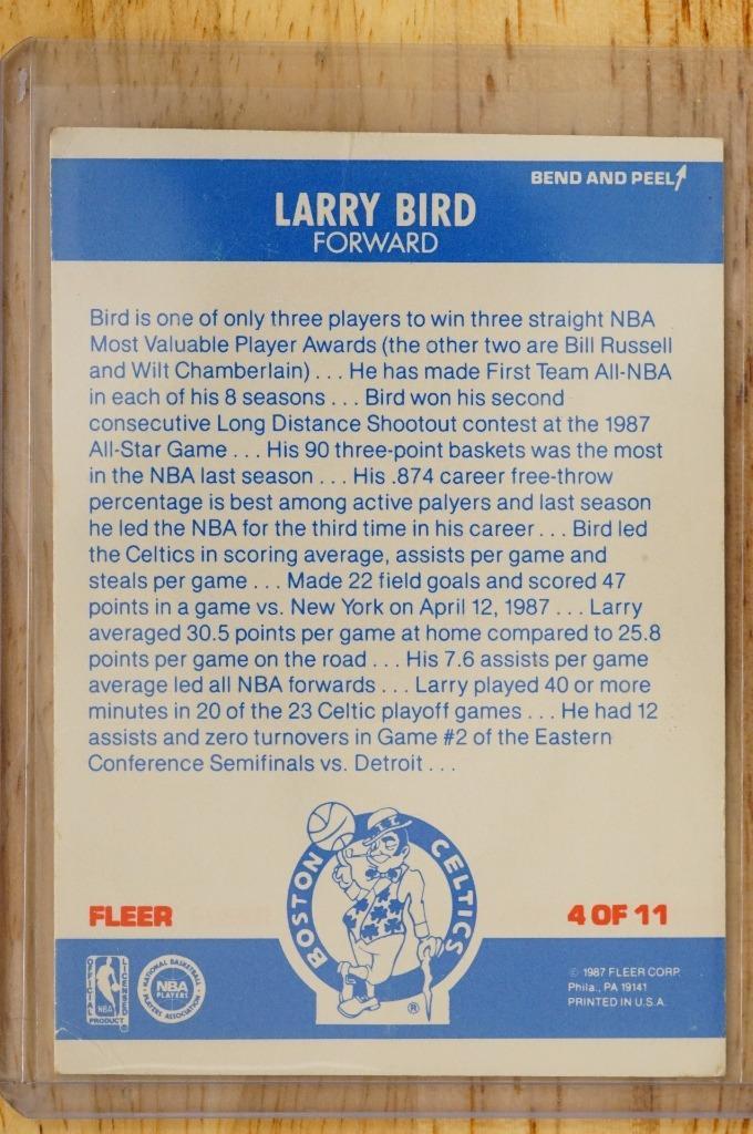 1987 Larry Bird #4 of 11 Fleer Sticker Basketball Boston Celtics. Raw and ungraded. No smoke or pet odor.