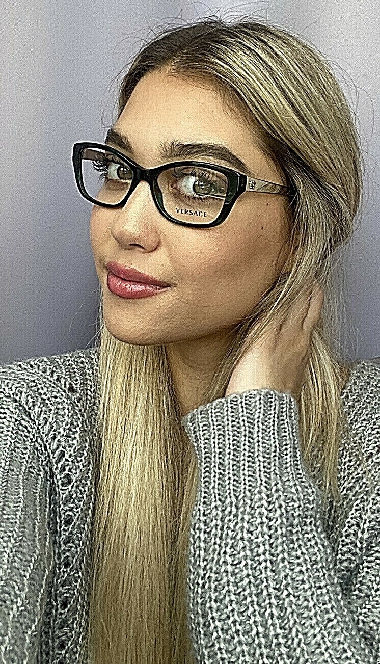 New Versace Mod.3632 Green 52mm 52-16 Cat Eye Women's Eyeglasses Frame Italy 2,7