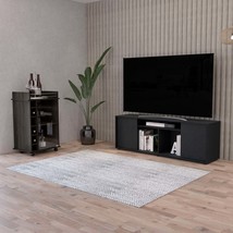 Black/Espresso Harvey 2-Pc Living Room Set, Dallas TV Stand, Huali Bar Cart