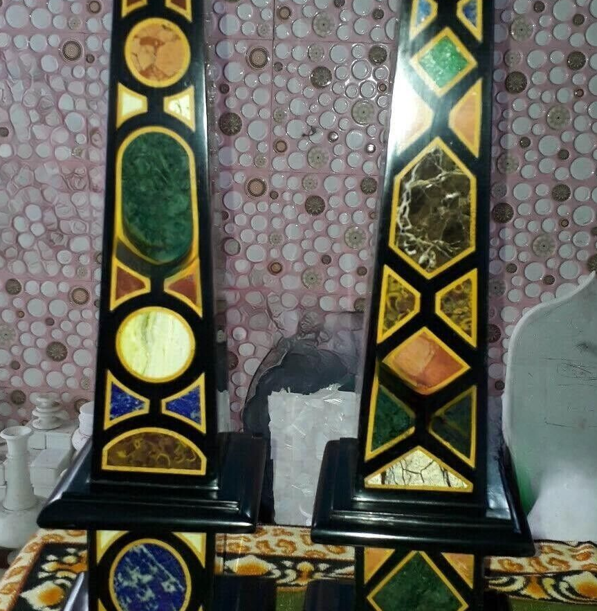 Two Marble Obelisk Pietra Dura Mosaic Art Handmade Work Luxury Personalized Gift