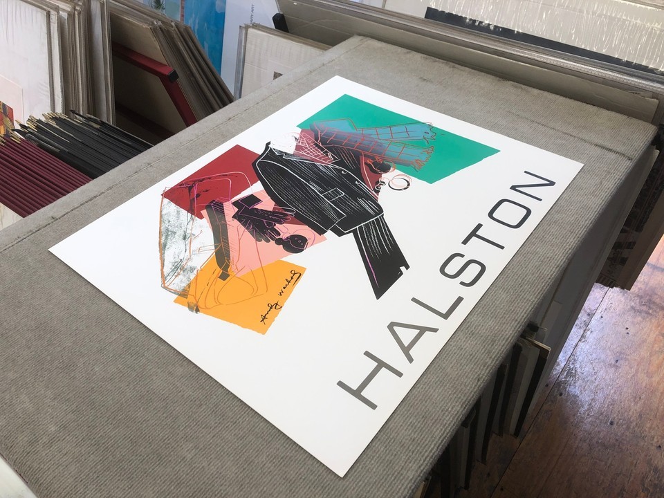 Sku: YY2713Artist: Andy WarholTitle: Halston Advertising Campaign PosterYear: 1982Signed: NoMedium: SerigraphPaper Size: 22.75 x 29.5 inches ( 58 x 75 cm )Image Size: 22.75 x 29.5 inches ( 58 x 75 cm )Edition Size: UnknownFramed: NoCondition: A-: Near Mint, very light signs of handlingAdditional Details: This original serigraph poster was designed for an in-store advertising campaign and printed in 1982. It is part of an unnumbered edition featuring collage-style images intended for in-store display of Halston's clothing and accessory fashion line. Halston, a prominent fashion designer and member of Warhol's inner circle, commissioned these posters. Printed by Rupert Jasen Smith in New York at his own studio, separate from Warhol's 'Factory', these posters are from the private collection of an individual who was once Halston's assistant and worked closely with him. She was gifted a full set immediately after the campaign's release, highlighting their historical and collectible value within the realm of fashion and pop art.