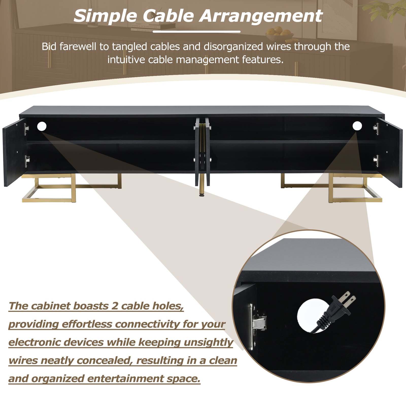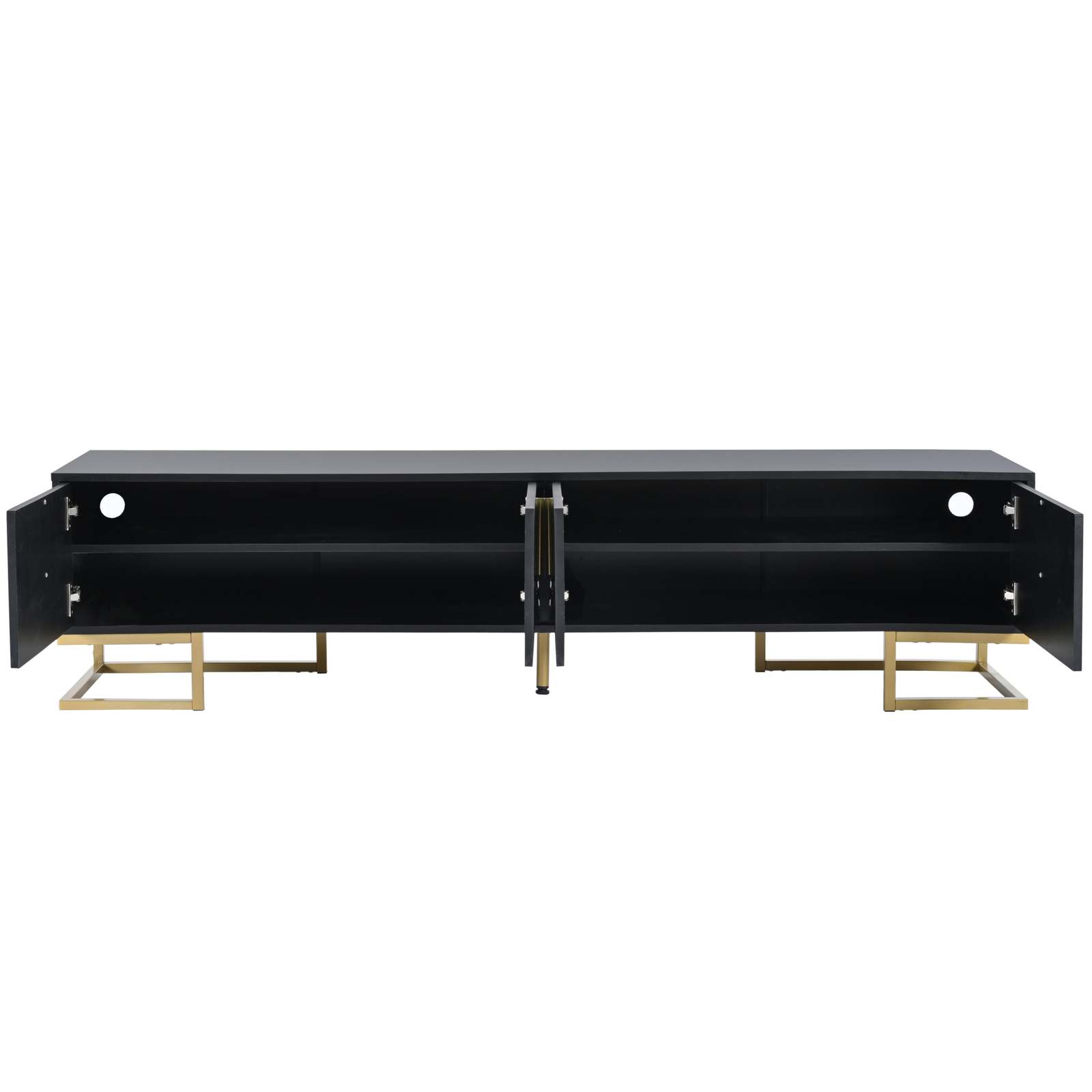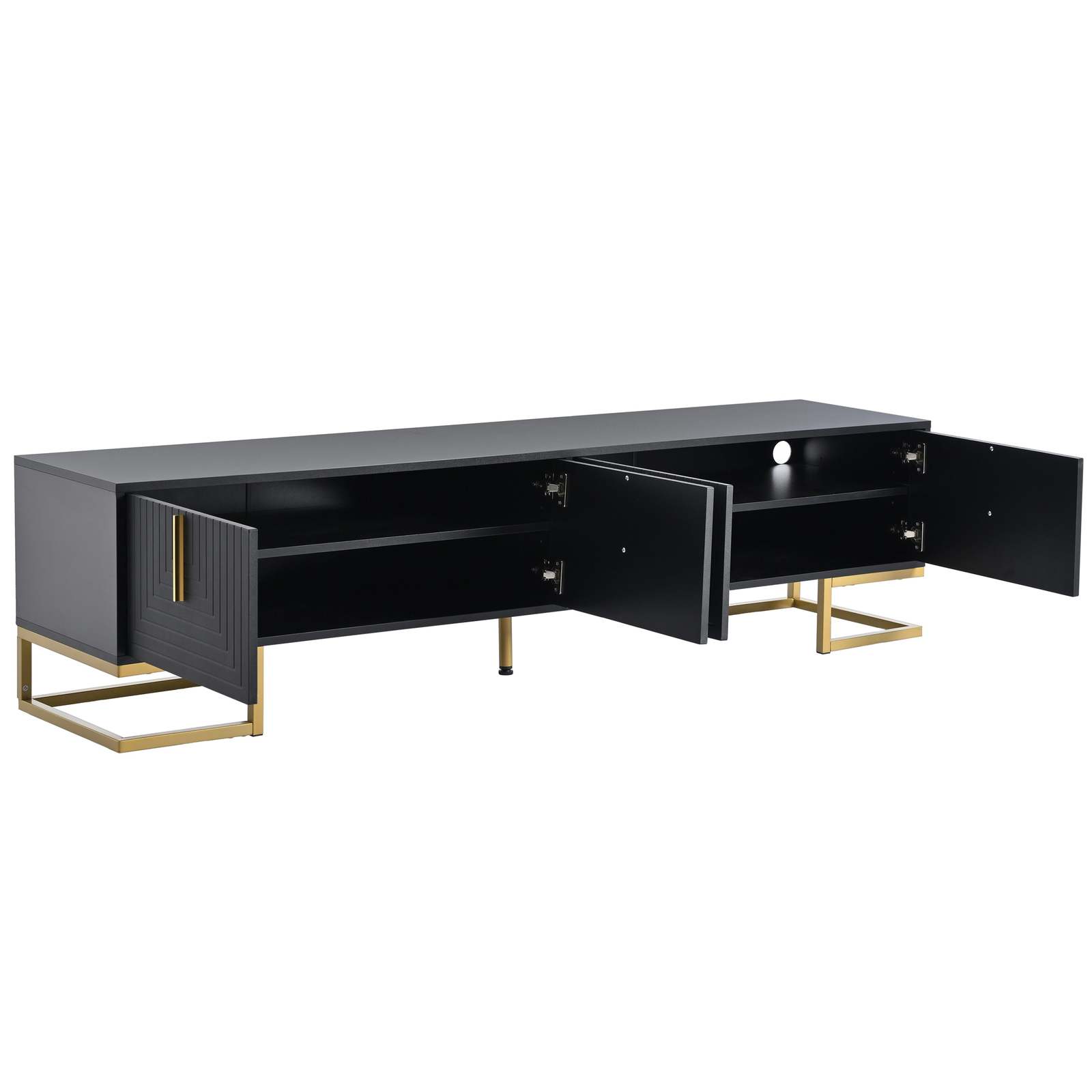 Modern Black TV Stand 80" w/ Gold Handles & Storage Cabinets