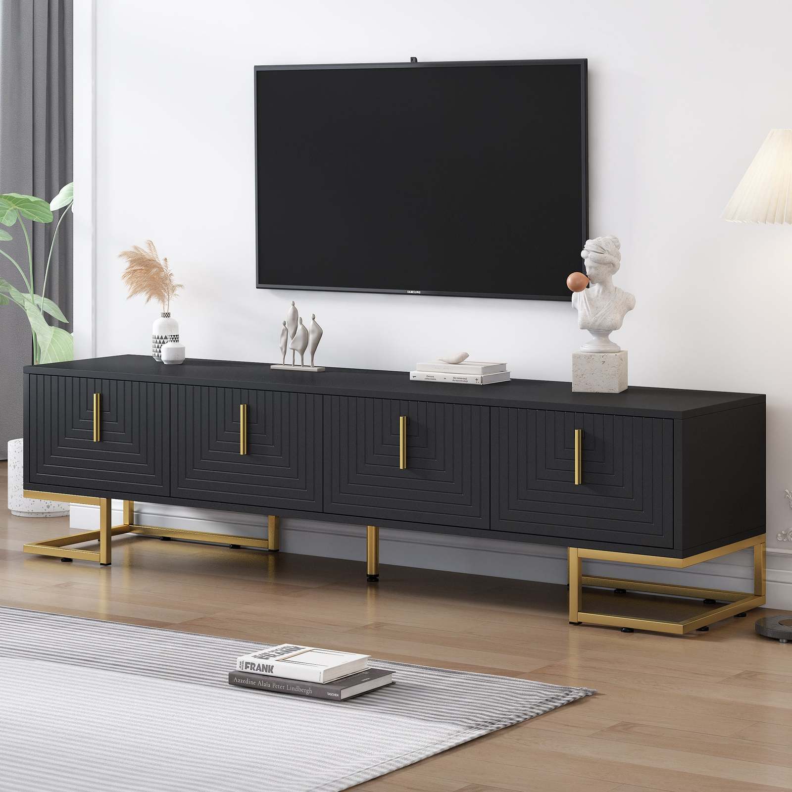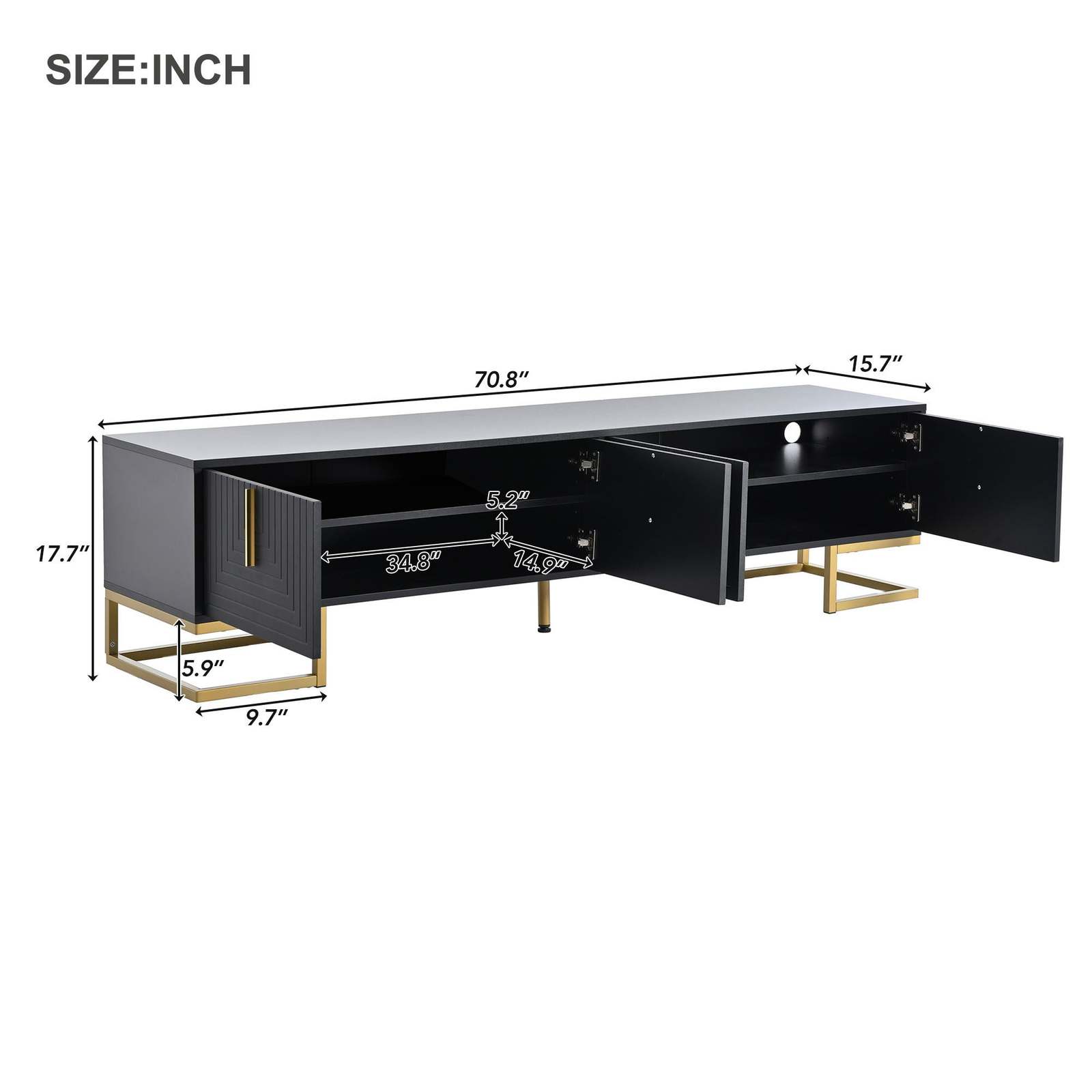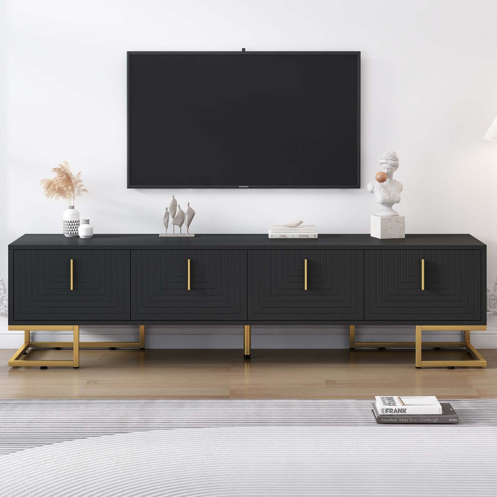 Modern Black TV Stand 80" w/ Gold Handles & Storage Cabinets