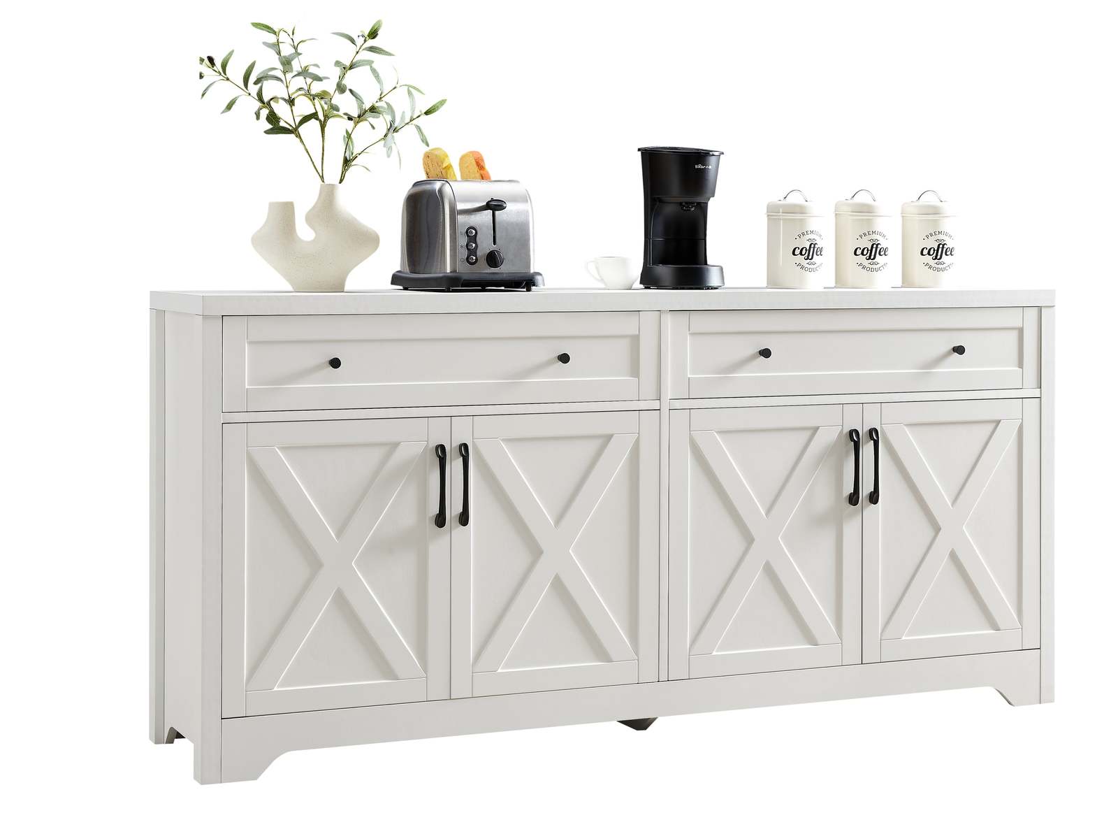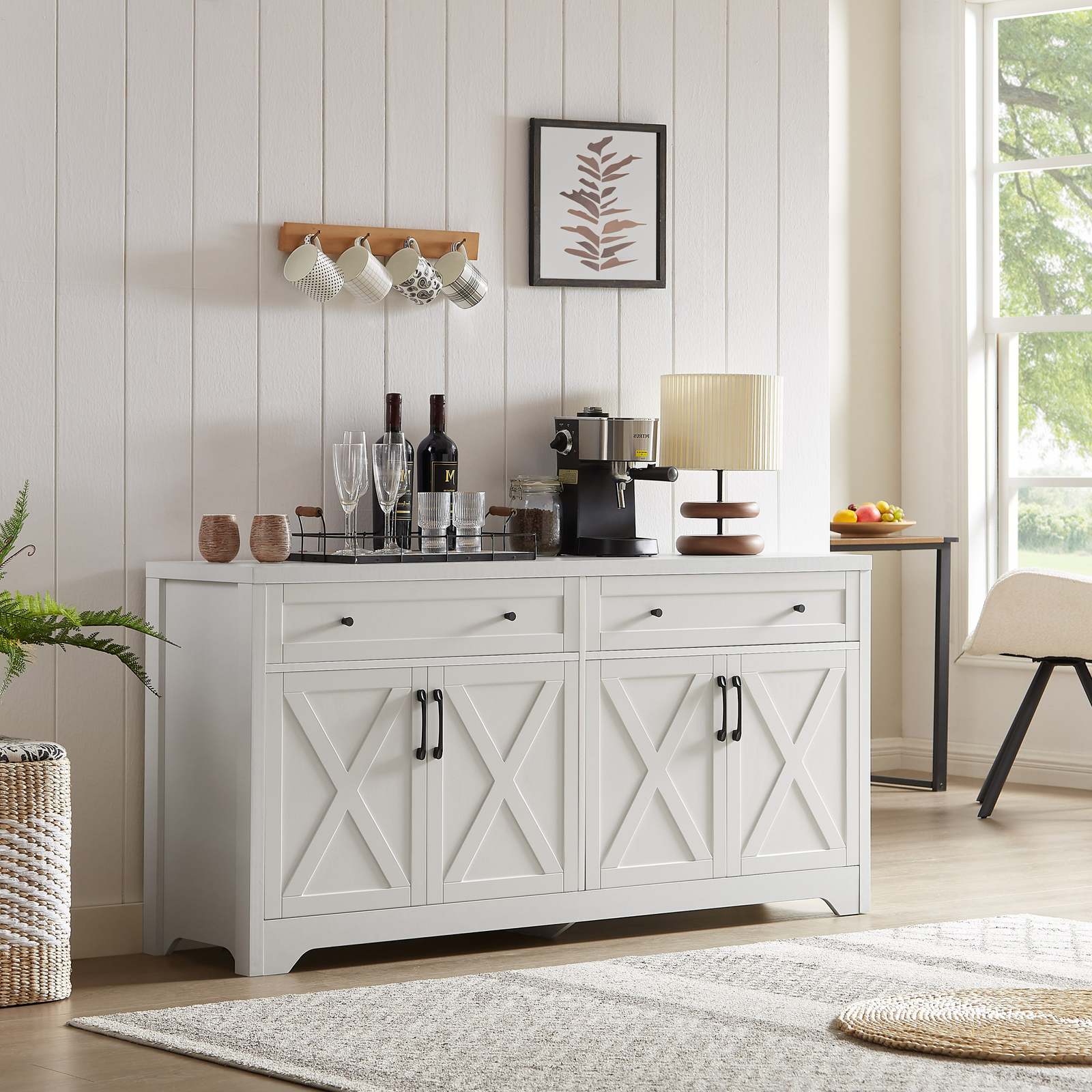 61" White TV Cabinet - Multifunctional Living Room Storage
