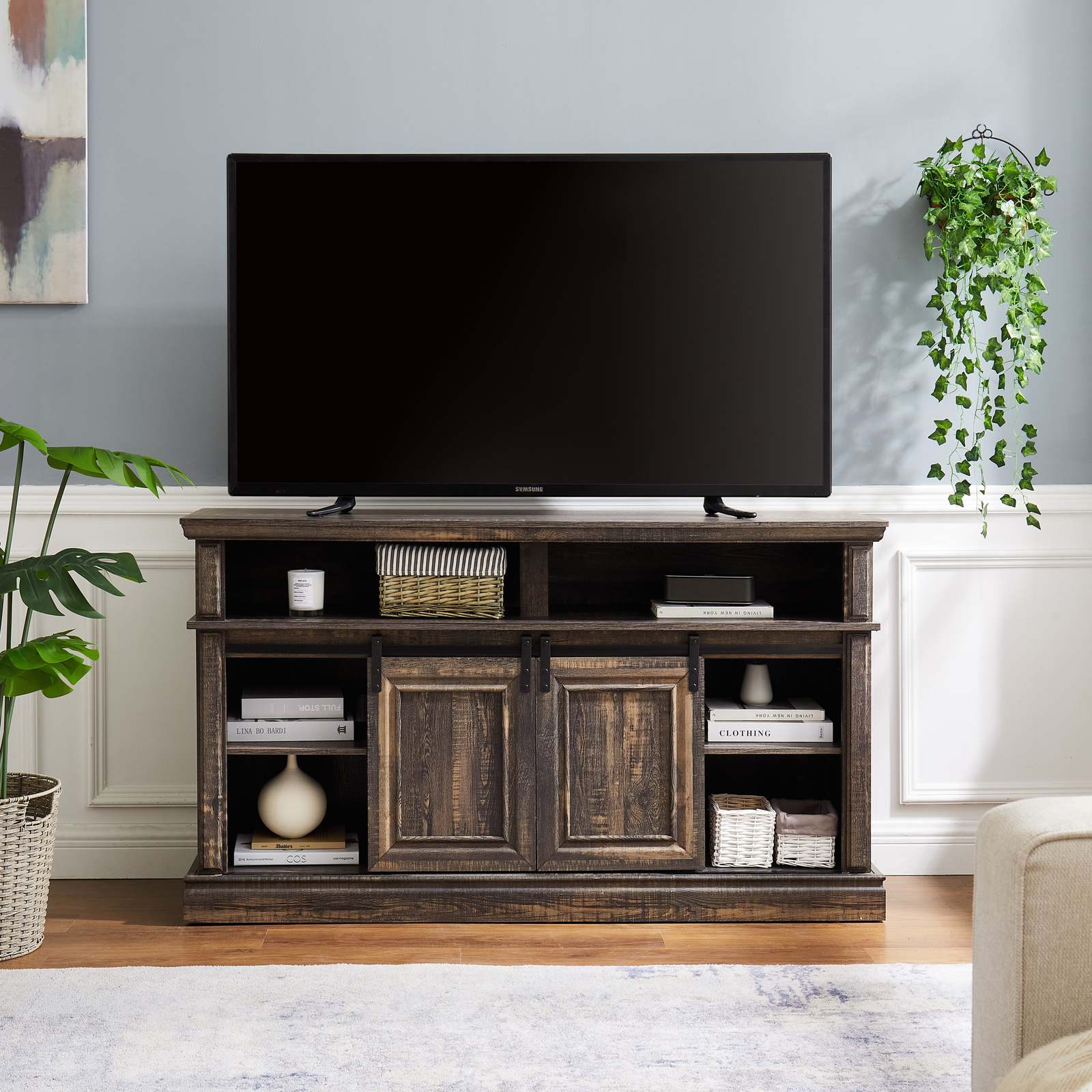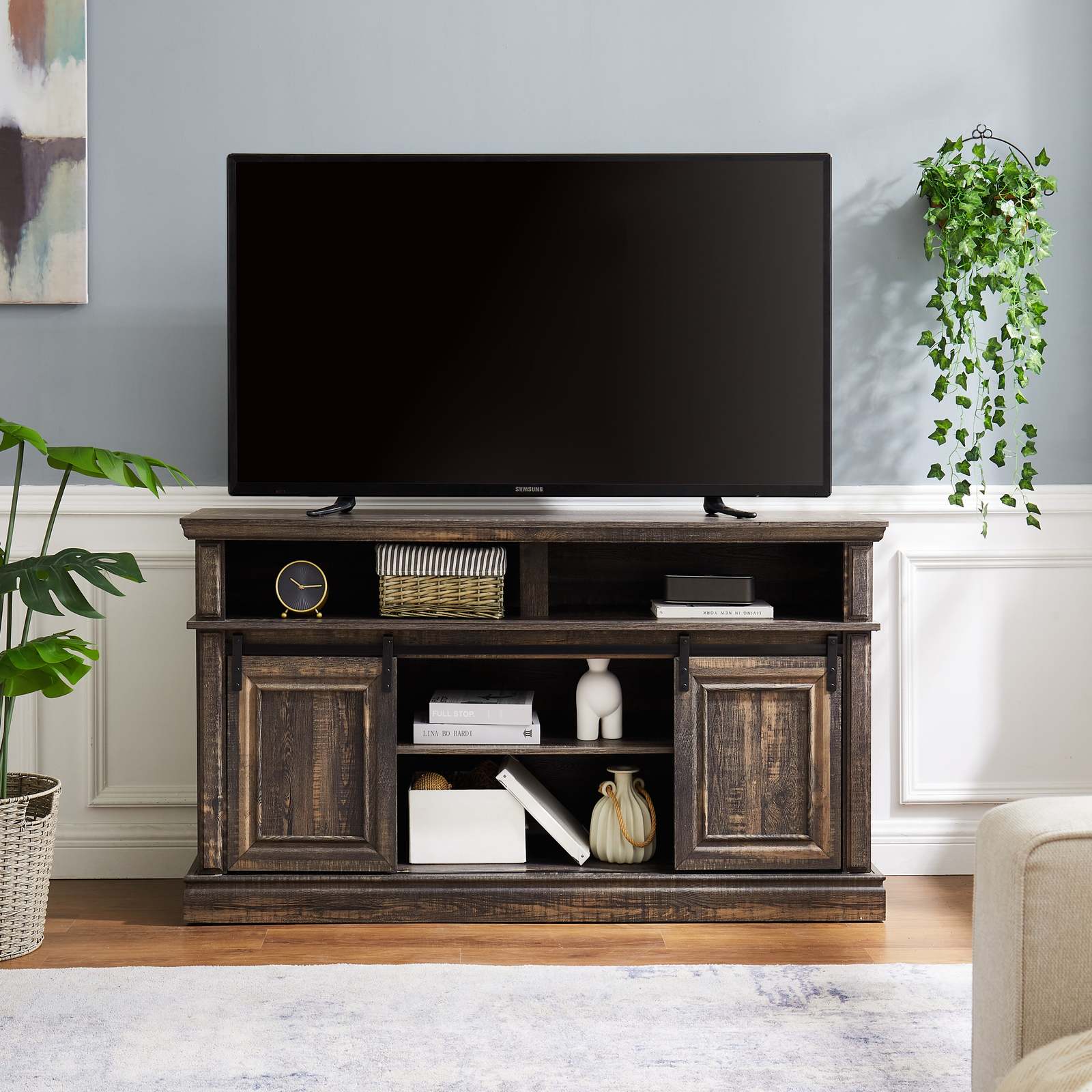 Mid Century Media Console TV Cabinet with Sliding Storage - Antique Brown