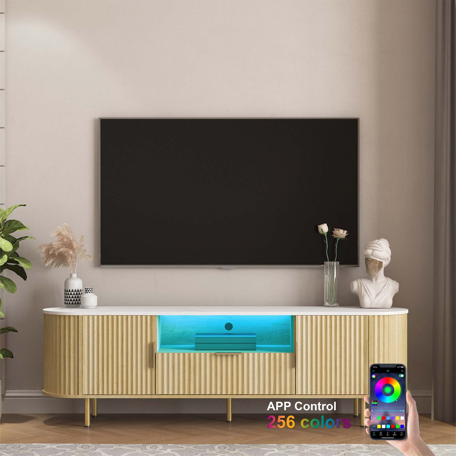 Living Room TV Cabinet with 16-Color LED Lights & Storage for 55+ Inch TV