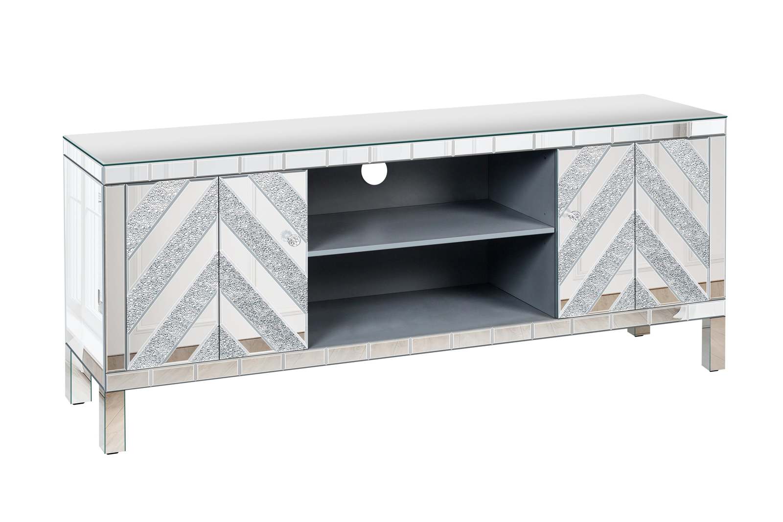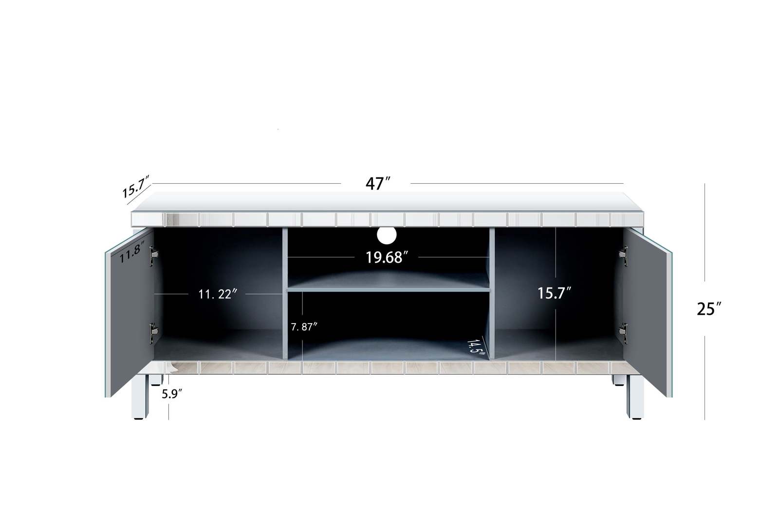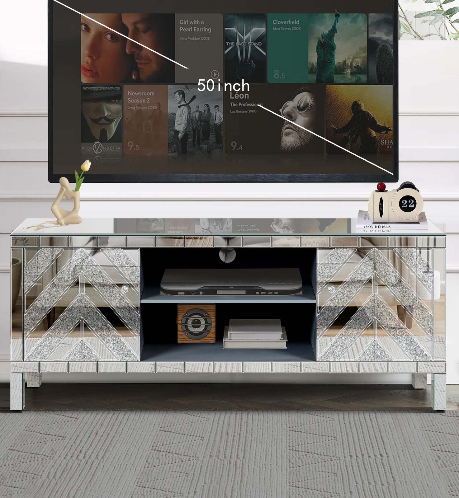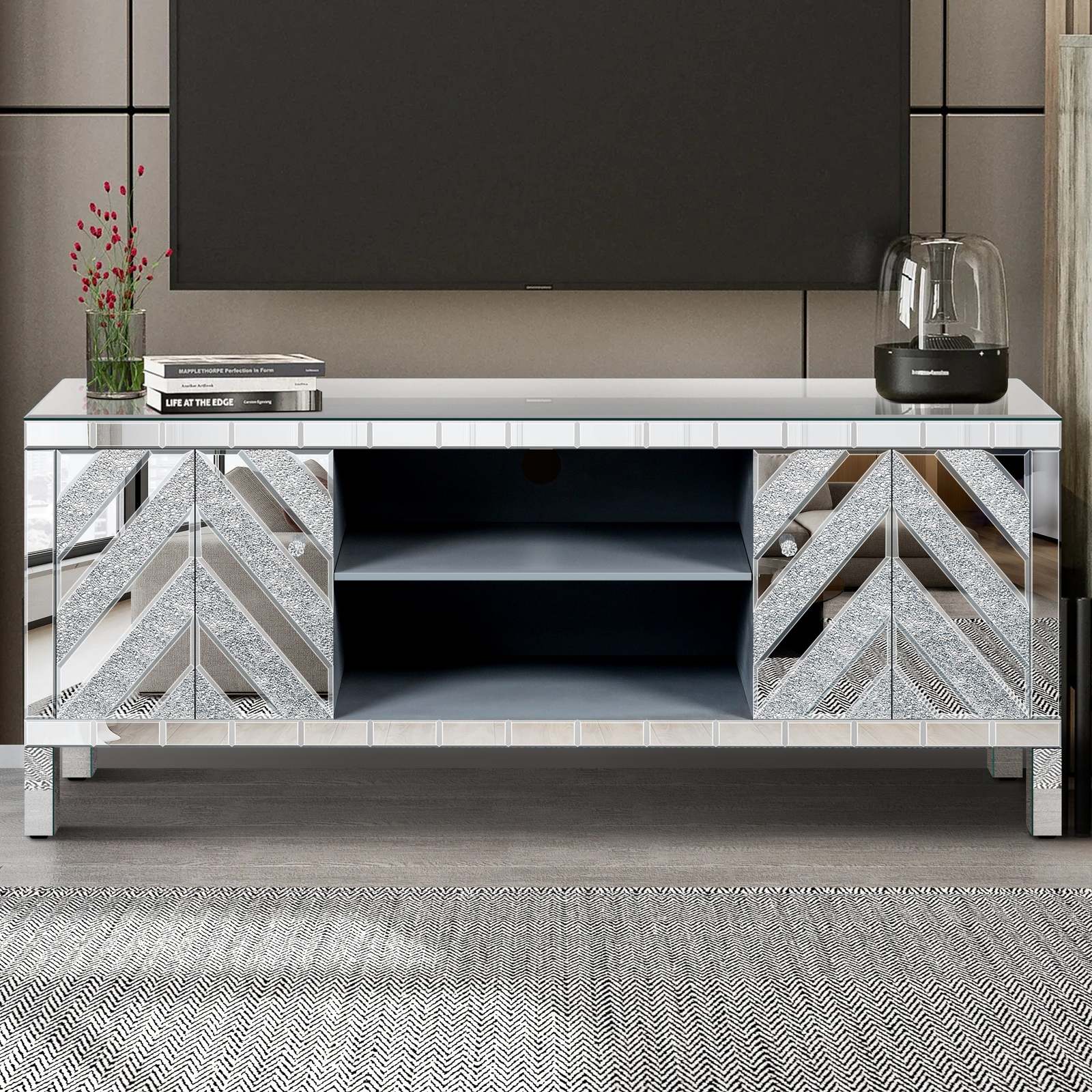 47in Mirror TV Media Console | Diamond Glass Doors | 50in TV