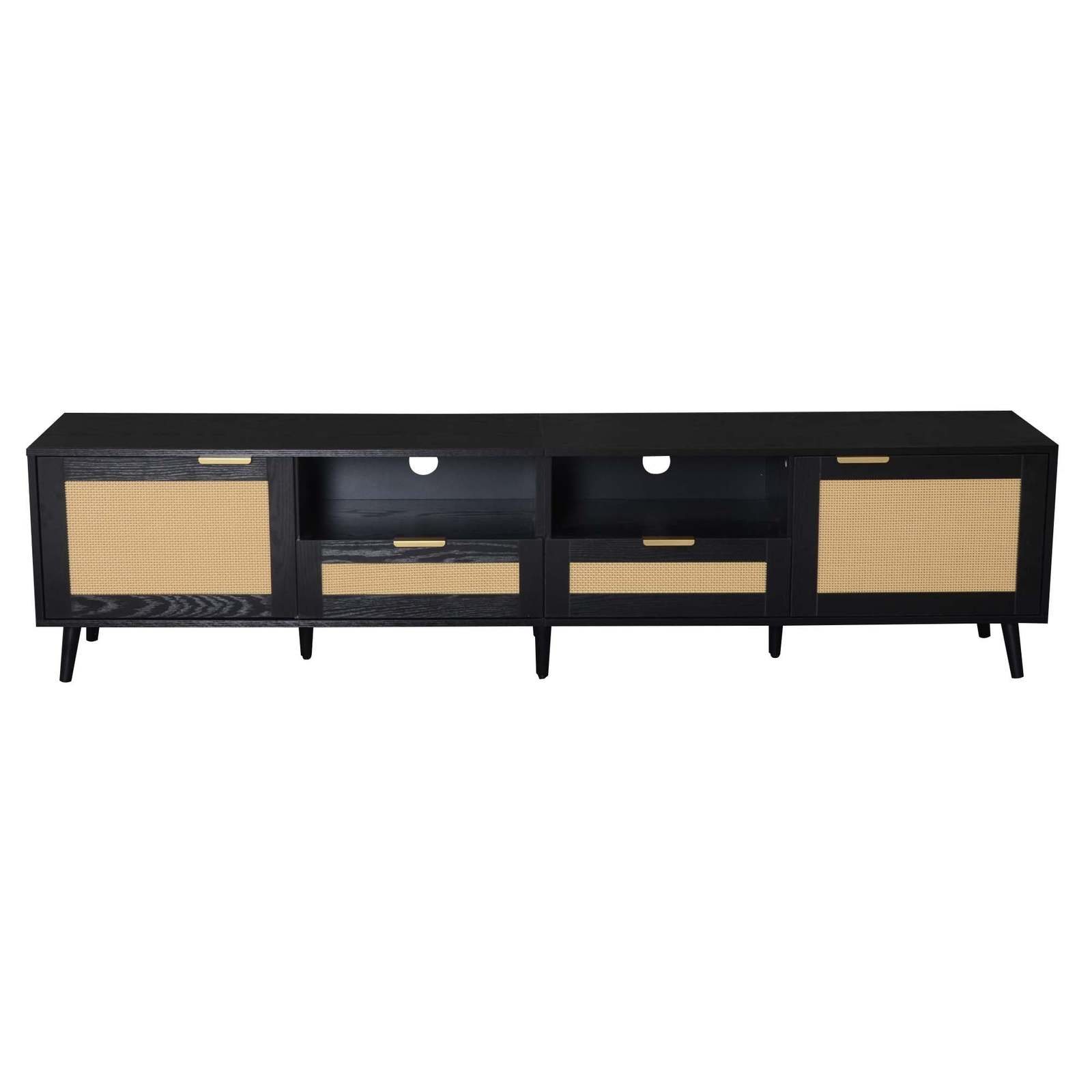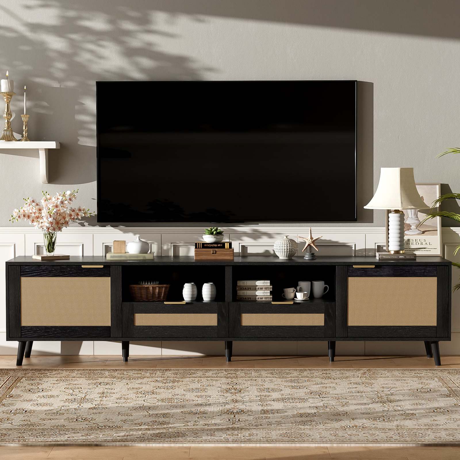 Rattan TV Stand 85'' | Modern Farmhouse Media Console Wood Legs