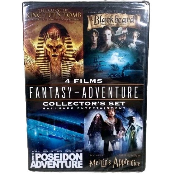 Experience the thrill of high-seas adventure and mythical quests with the Fantasy-Adventure 4-Film Collection. This 2-disc DVD set includes swashbuckling tales of 'Blackbeard,' epic legends of 'King Tut's Tomb,' and enchanting journeys from 'Merlin's Apprentice.' Featuring an all-star cast including Casper Van Dien, Rutger Hauer, and Richard Chamberlain, these films are a treasure trove for fans of action and adventure.